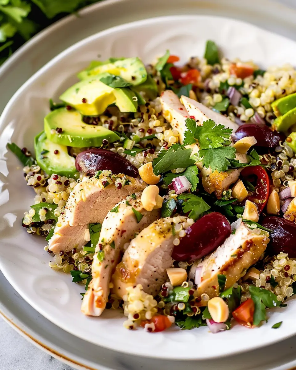 Home » Recipes » 10-Minute Chicken and Quinoa Salad: A Fresh and Easy Delight