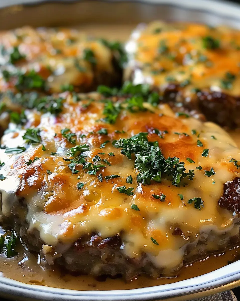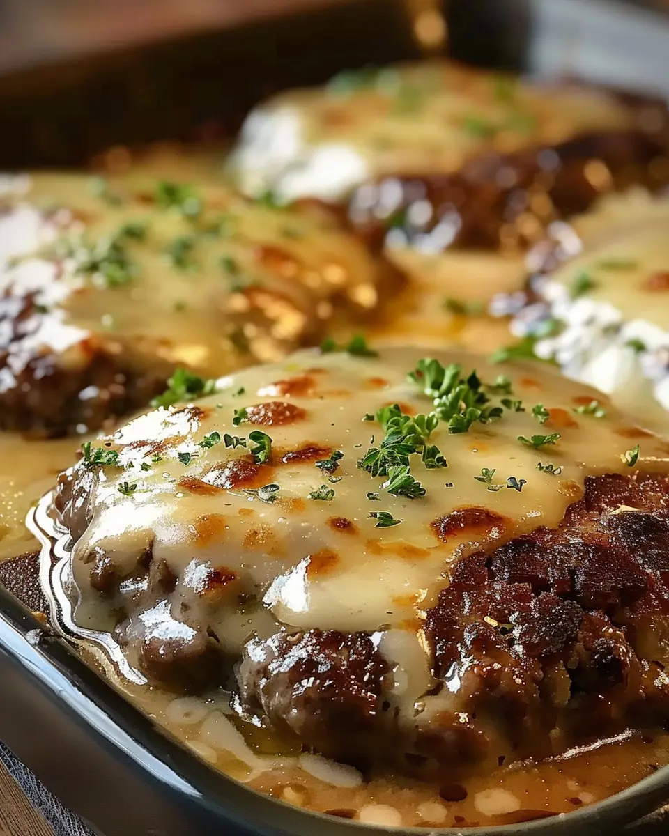 Once your gravy is ready, it’s time for the final assembly. Preheat your oven to 350°F (175°C), and in a baking dish, layer the browned patties and pour the creamy gravy evenly over them. Bake for about 20-25 minutes until everything is heated through and bubbly. The combination of the rich gravy and tender steak creates an aroma that will have everyone gathering around the kitchen.