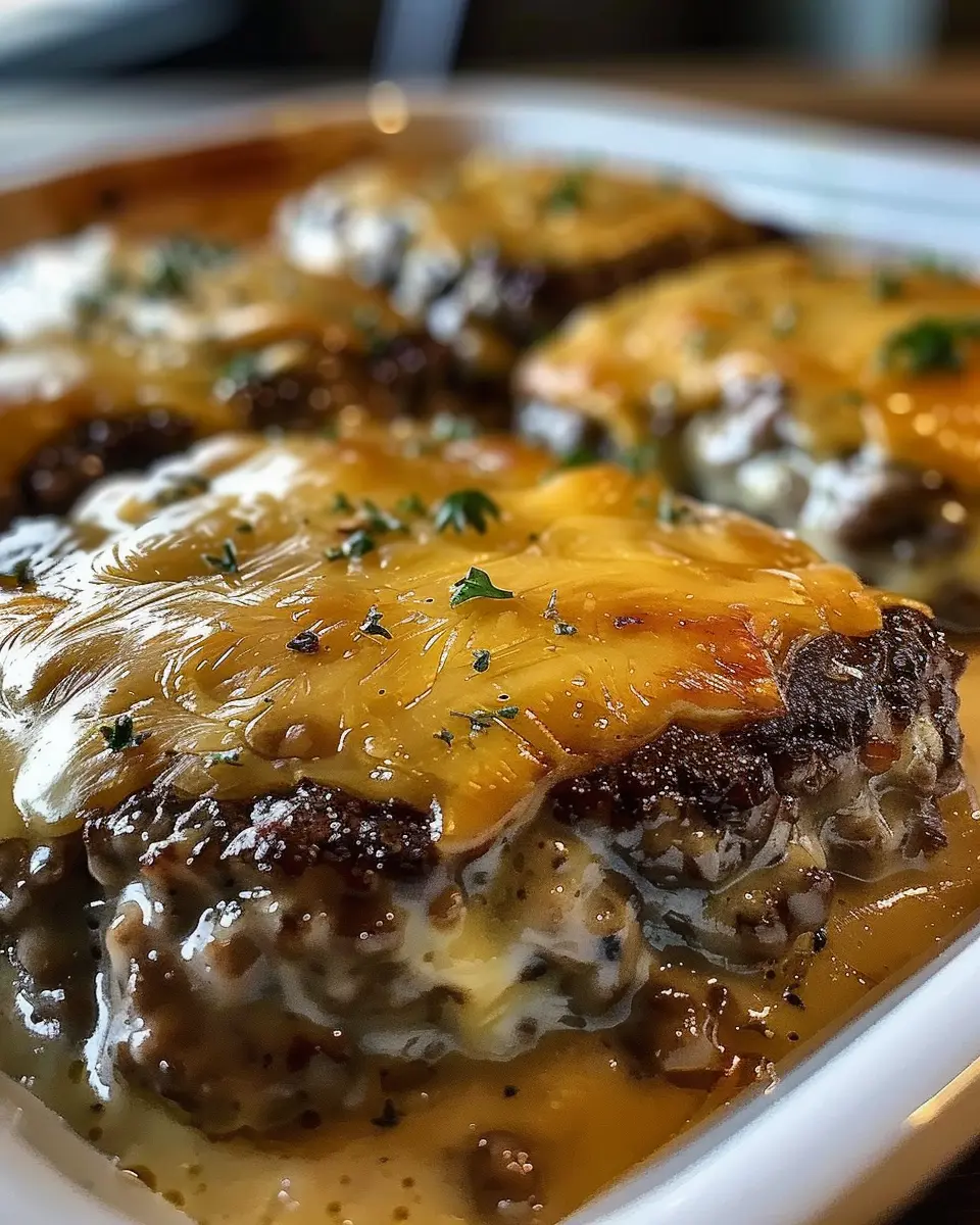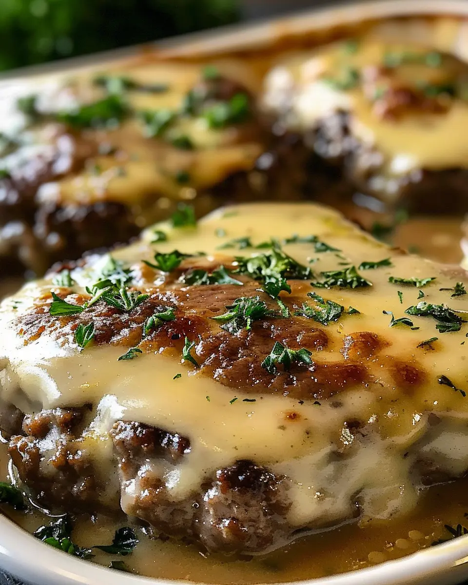Preheat your oven to 350°F (175°C). Once warmed, transfer the skillet to the oven and bake for about 25-30 minutes. You’ll know it’s done when the patties are cooked through and the gravy has thickened slightly. Feel free to garnish with some fresh parsley for an added touch of color.