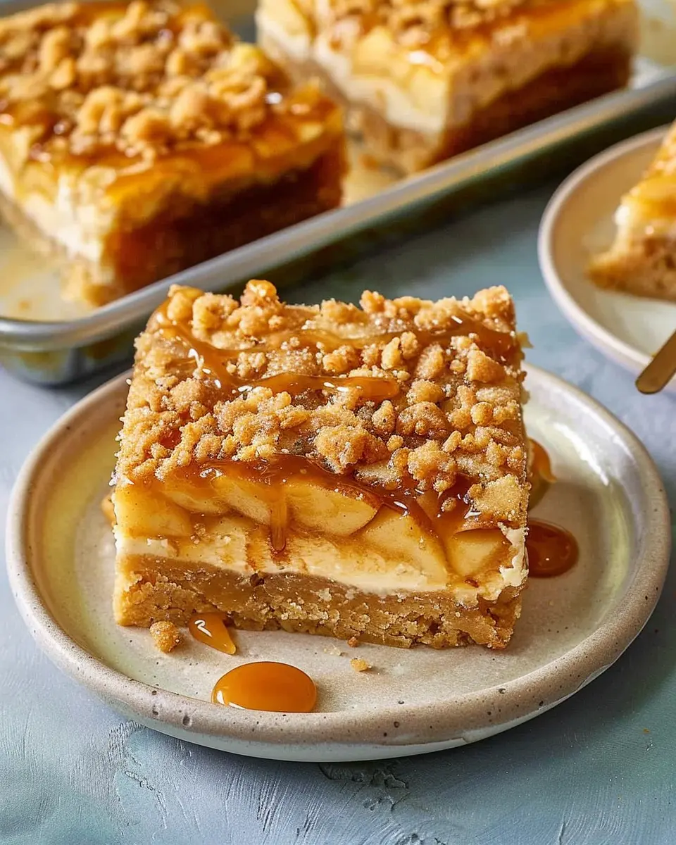 These Apple Caramel Cheesecake Bars combine creamy cheesecake, sweet apples, and rich caramel for an indulgent dessert perfect for any occasion.