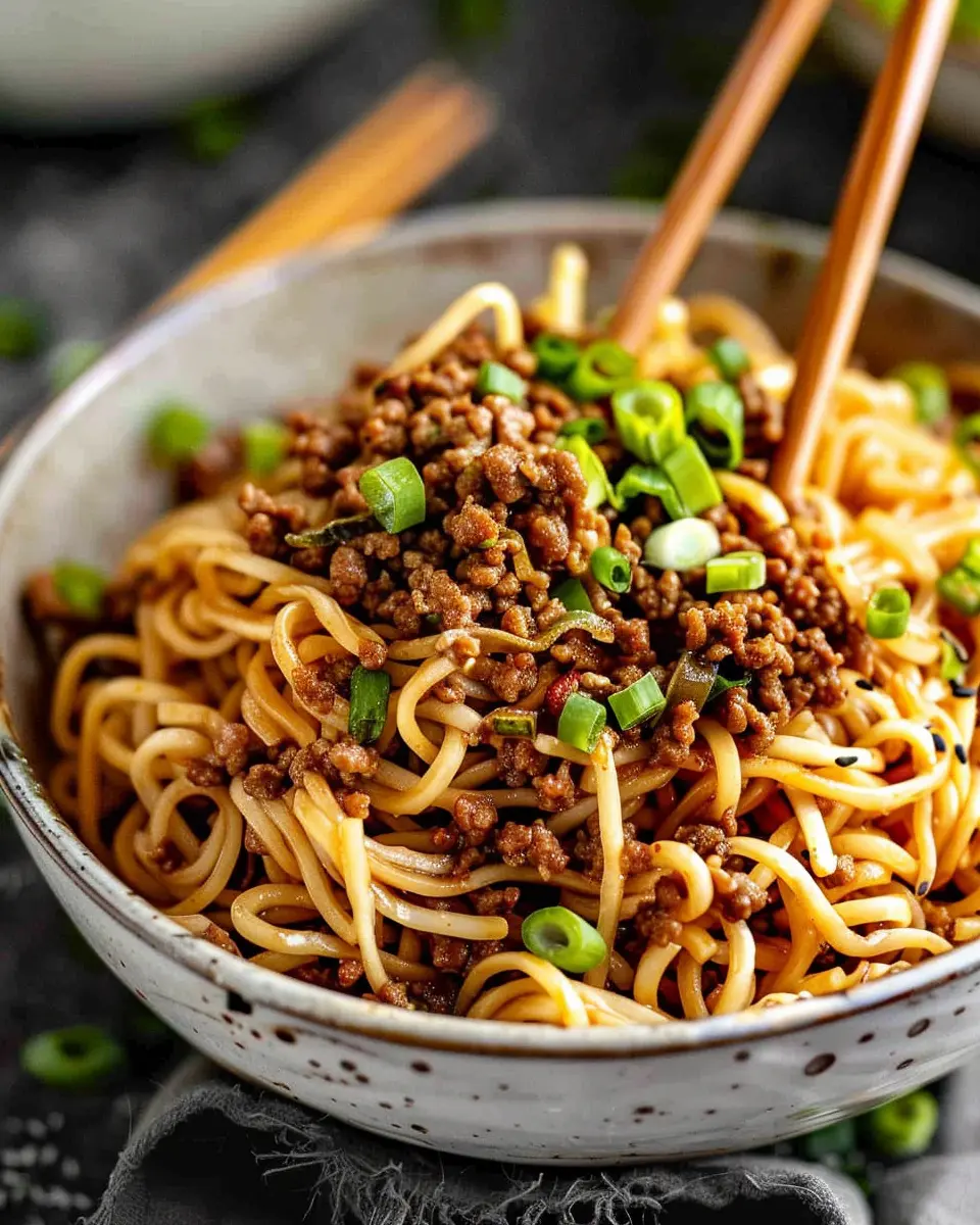 PrintAsian Ground Beef Noodles: Easy and Flavorful Weeknight Delight