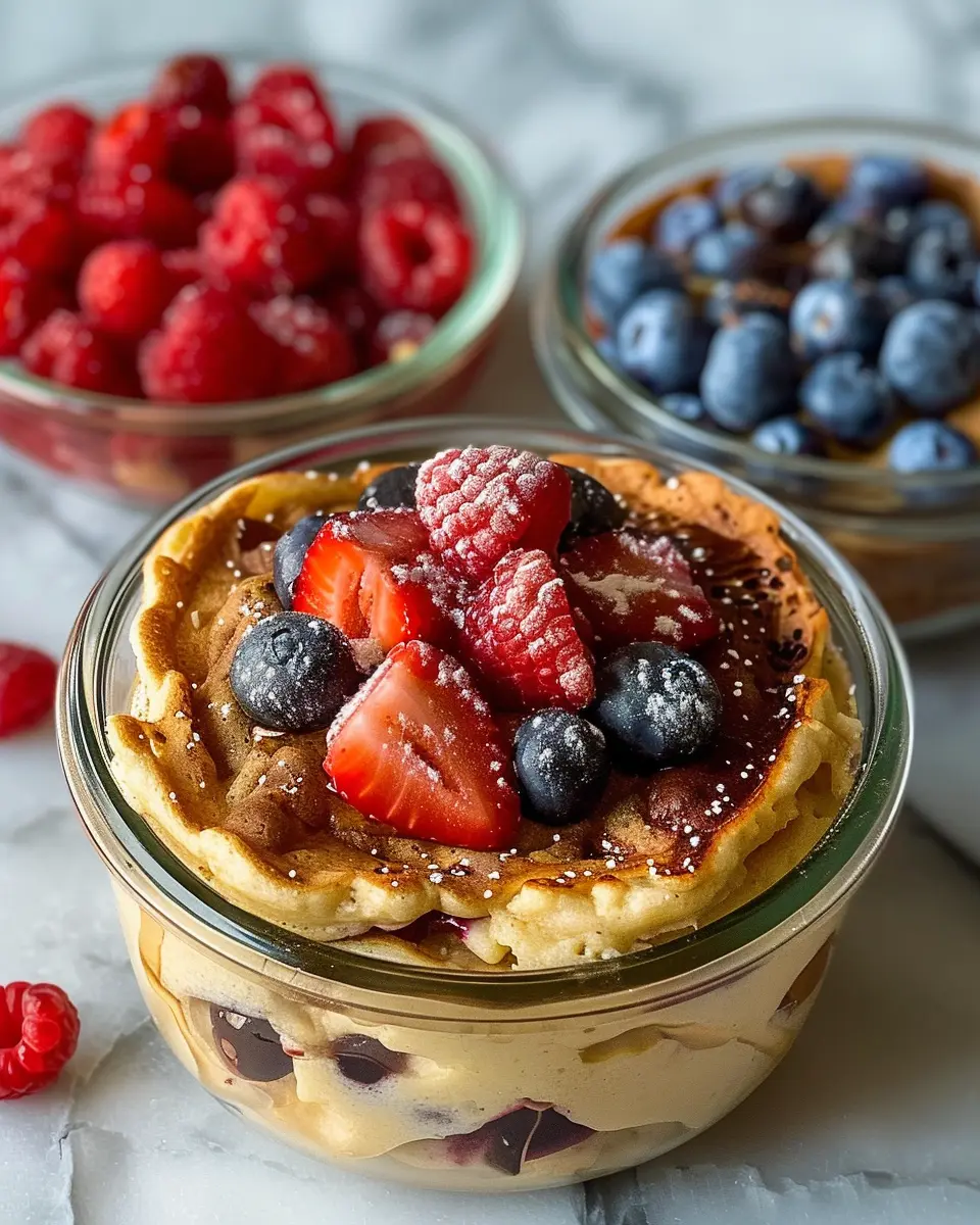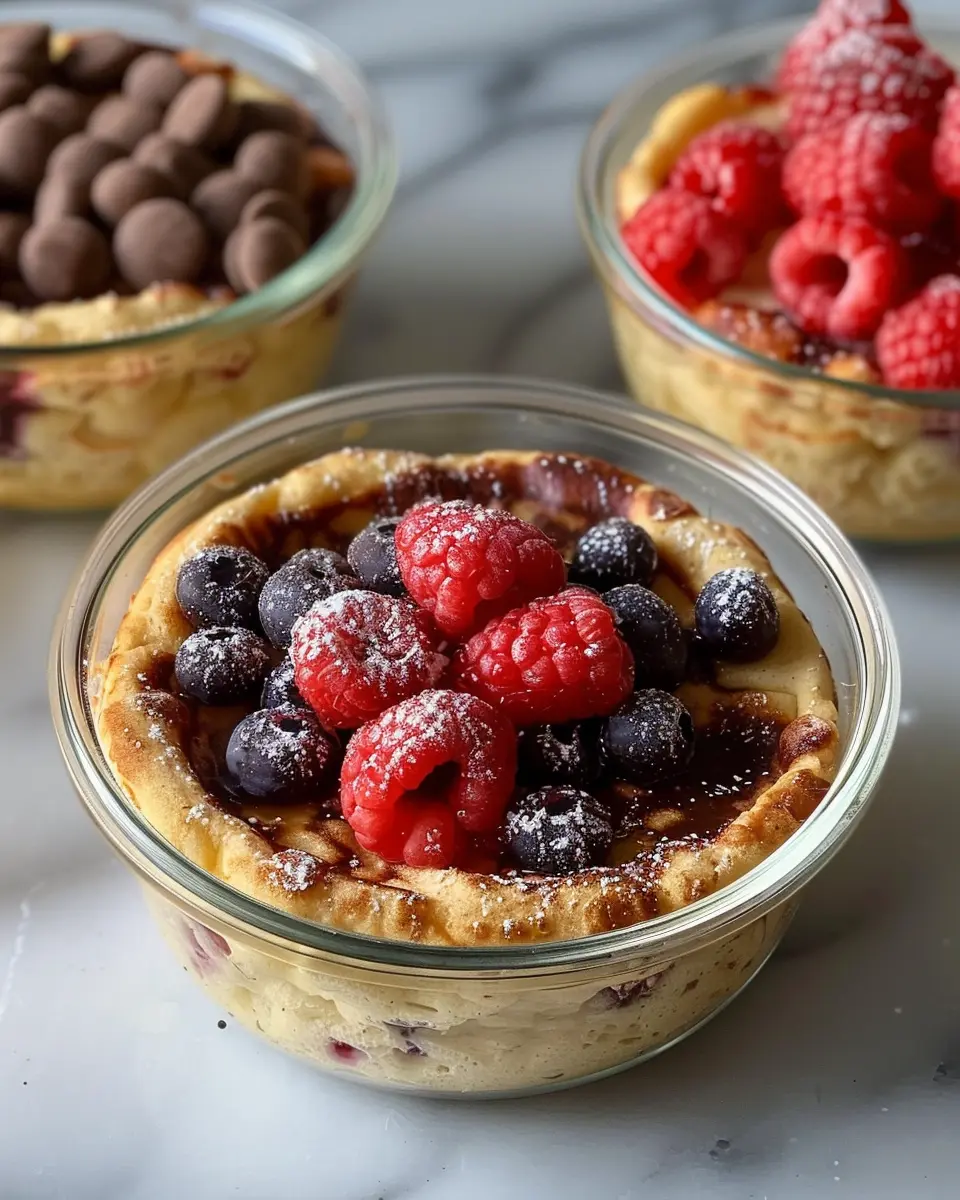 Here’s where the magic happens! After mixing your batter, you can customize your baked protein pancake bowls with any toppings that tickle your fancy. Whether you’re in the mood for a tropical twist with coconut and pineapple or a classic touch with peanut butter and banana, the sky’s the limit! Consider these combinations: