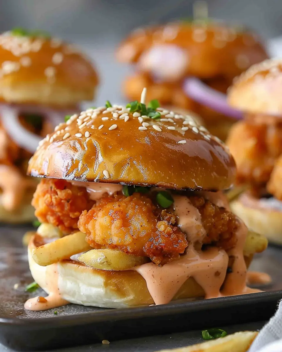 • Social Dining Experience: These bang bang chicken sliders are great for sharing. Hosting friends or family? Set up a slider bar where guests can choose their toppings and create their versions of the sliders. This adds an interactive element to your gatherings!
