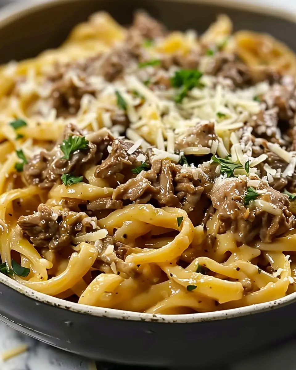 - Add cheese: Stir in the grated parmesan until it melts into the sauce, creating a luscious coating around the pasta and beef.