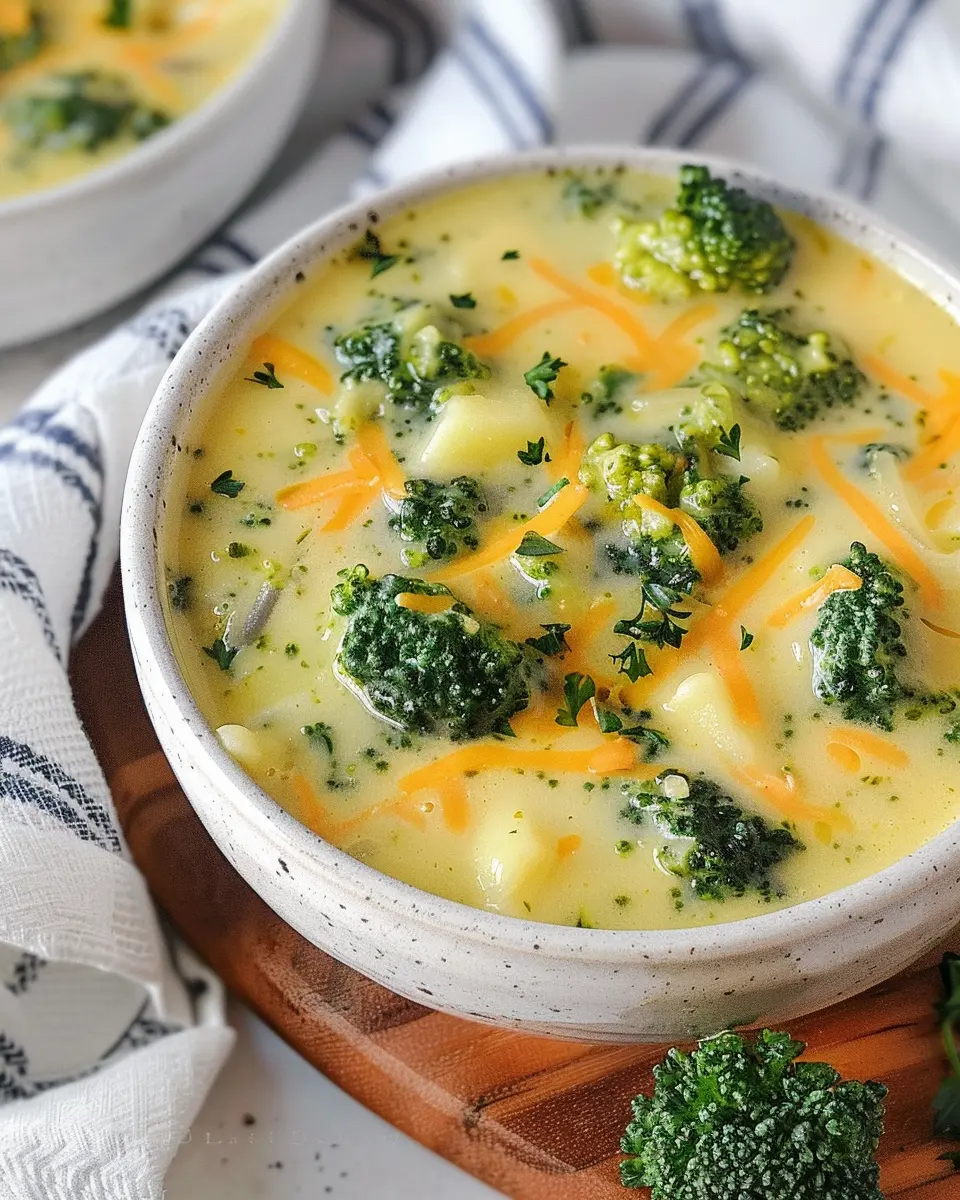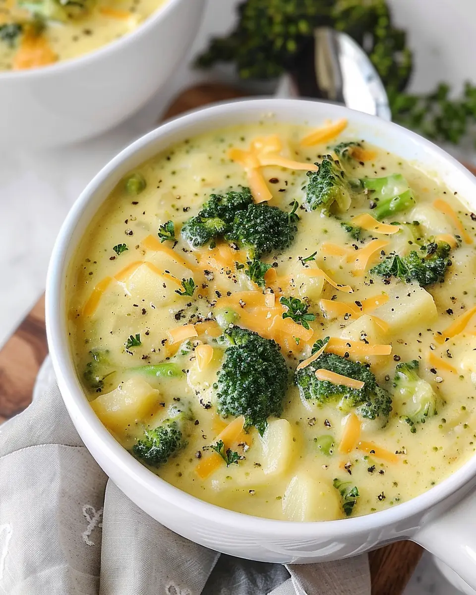 This creamy broccoli cheese and potato soup is the ultimate comfort food, perfect for chilly nights.