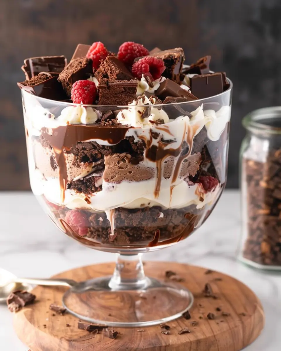 Indulge in the rich layers of chocolate with this delightful Brownie Trifle. Perfect for any occasion!