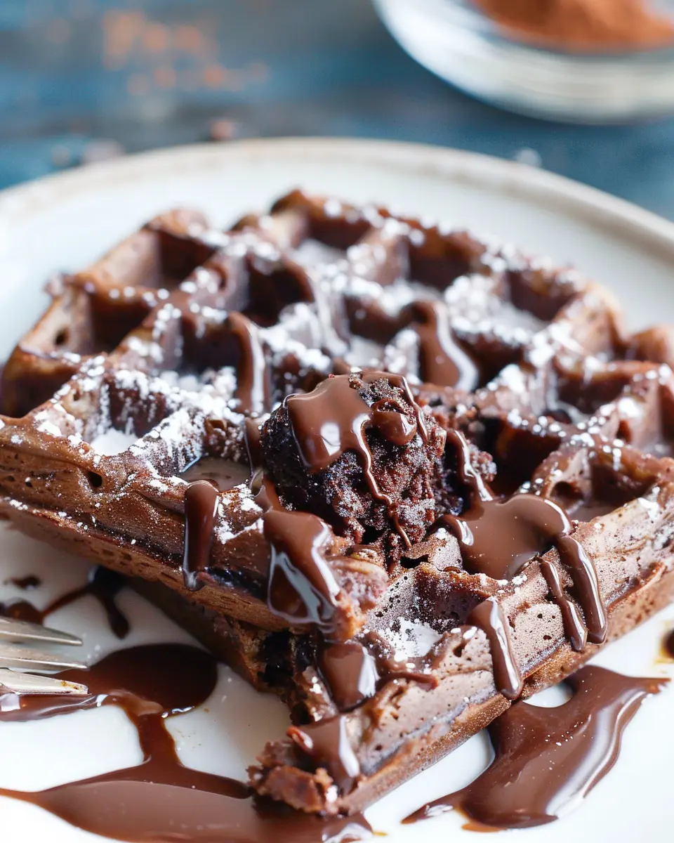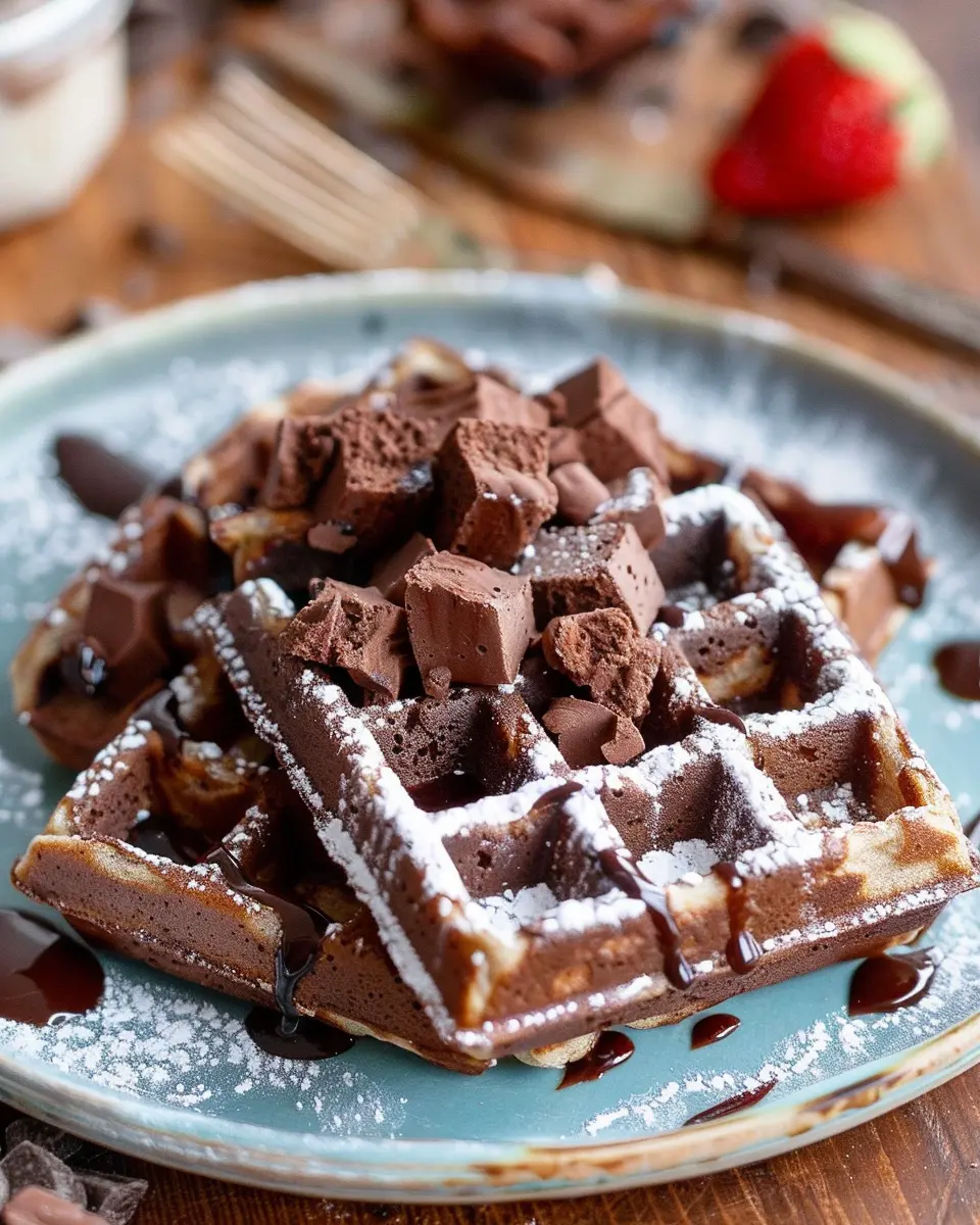 Indulge in the rich, chocolatey goodness of brownie waffles, a treat that combines two favorites into one delicious dessert.