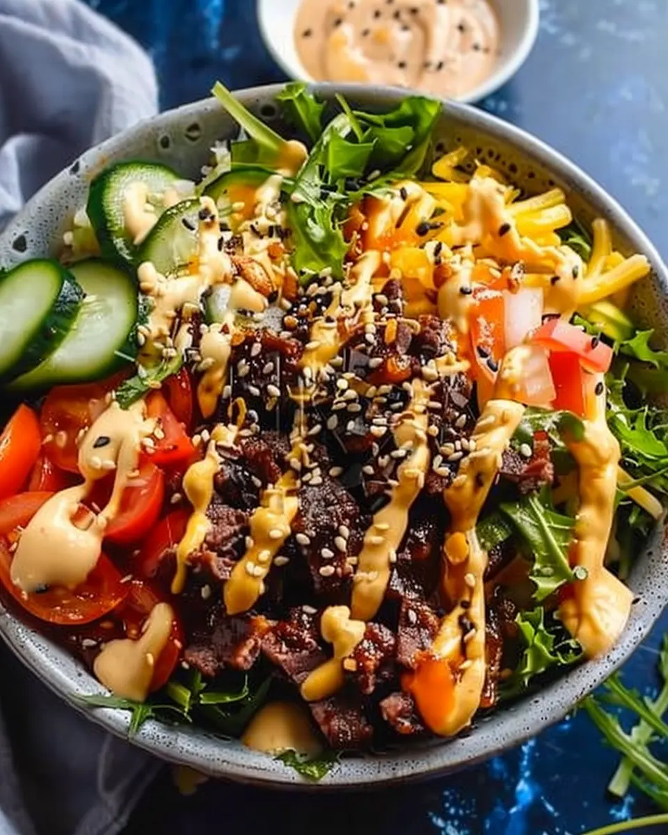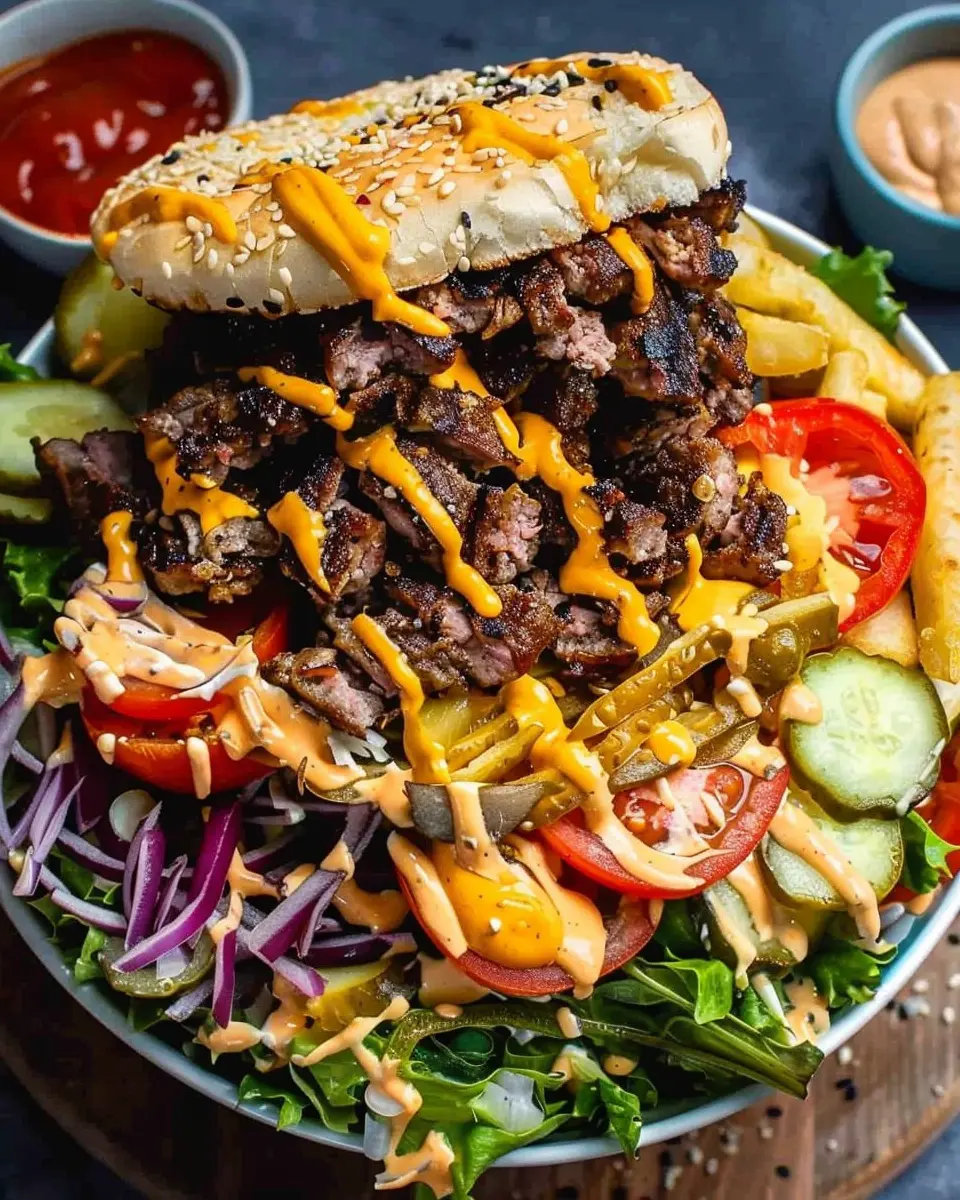 Now that everything is beautifully assembled and dressed, it’s time to dig in. Serve your burger bowls immediately while the ingredients are fresh and the flavors vibrant.