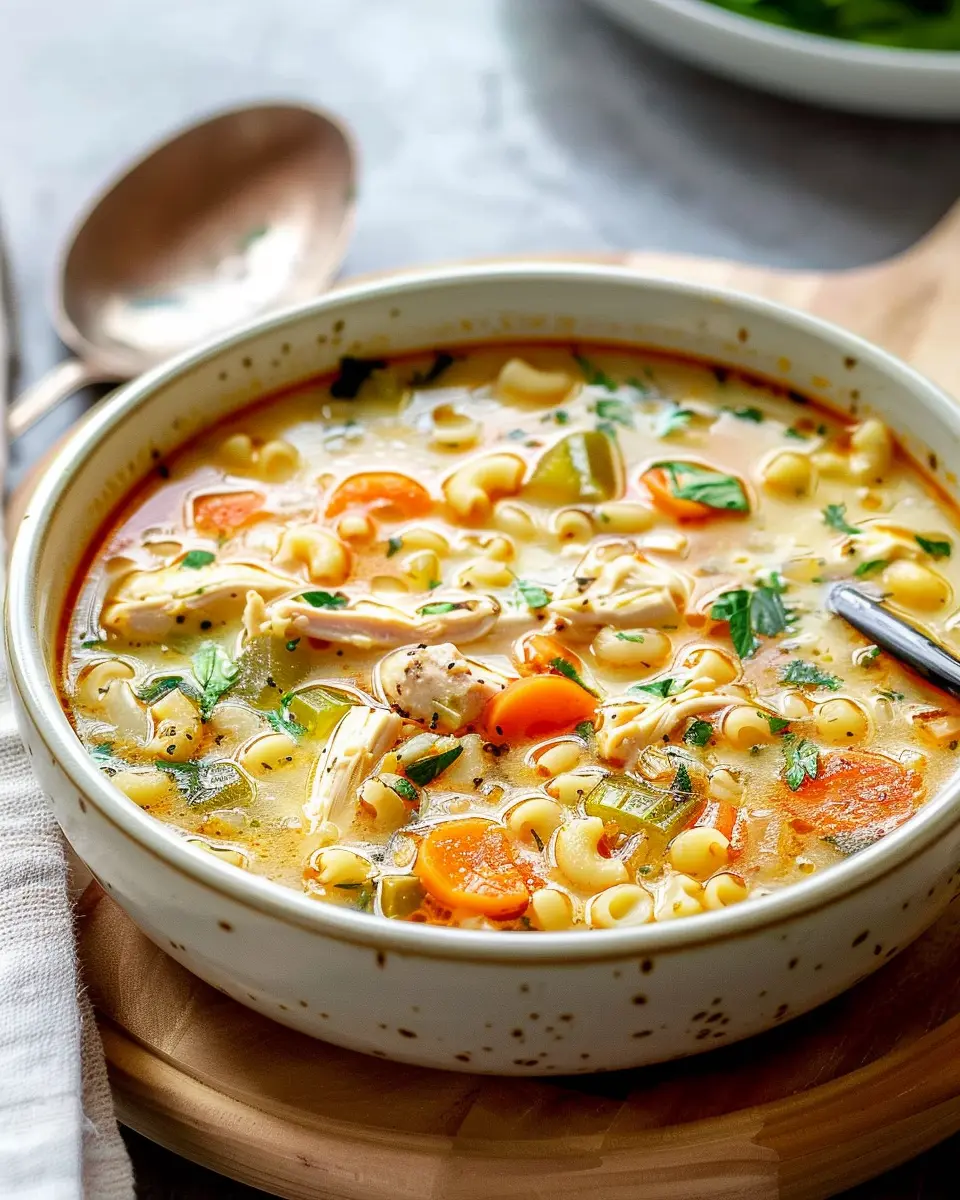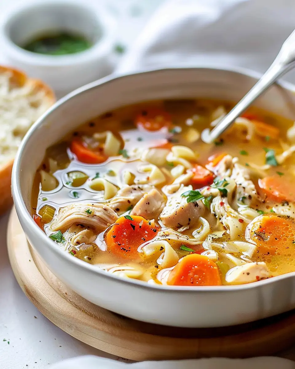 A serving of this delightful chicken soup typically contains around 200-250 calories. This means you can enjoy a bowl without feeling guilty about your caloric intake, making it a great option for lunch or dinner.
