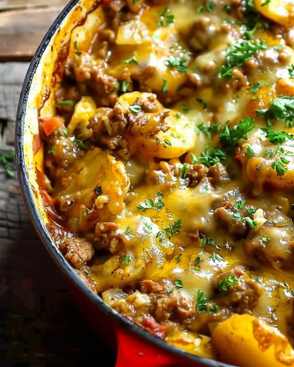 PrintCheesy One Pot Beef and Potatoes: A Cozy, Indulgent Delight