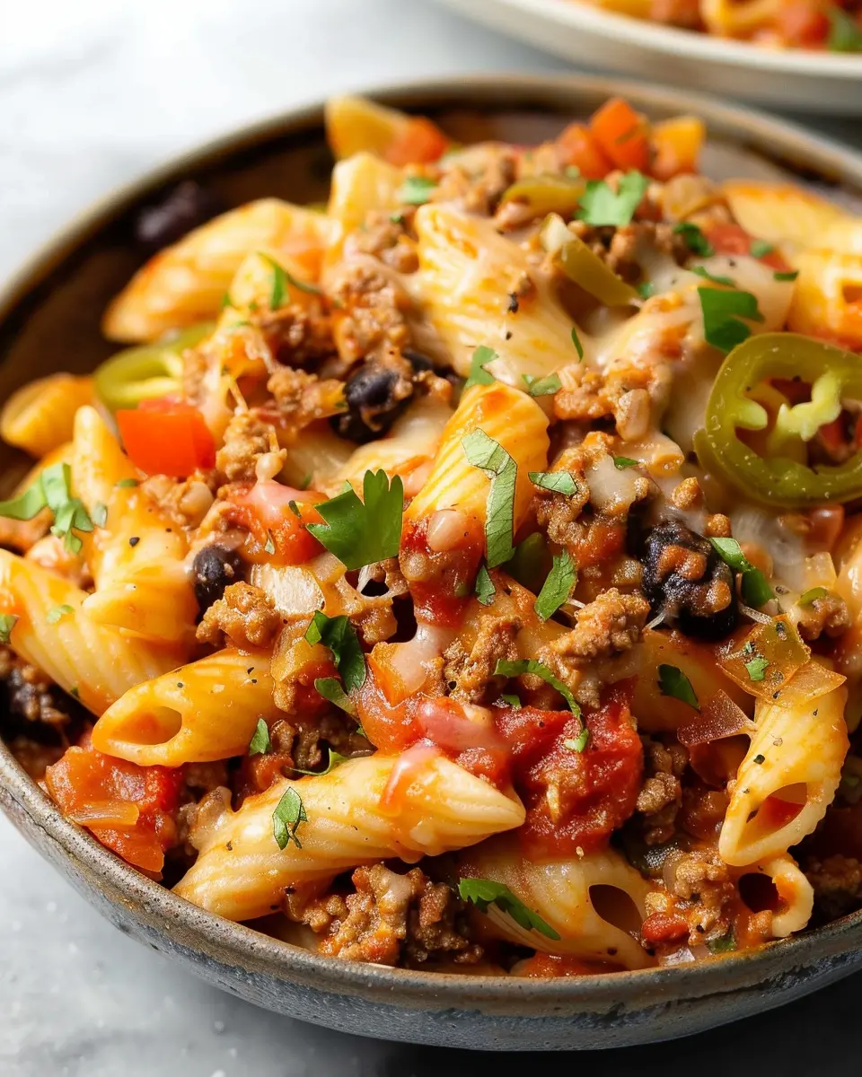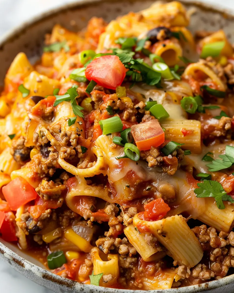 • Versatility: Whether you’re dining solo or hosting a small gathering, cheesy taco pasta can adapt to your needs. You can make a single serving for a cozy night or a large batch to feed a group. Plus, it’s a great way to sneak in some veggies if you’re looking to eat a bit healthier!