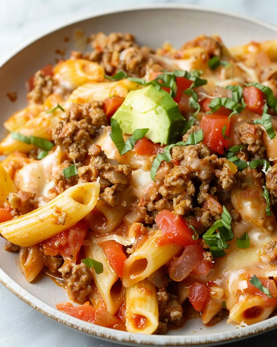 Home » Recipes » Cheesy Taco Pasta: Easy Comfort Food with Turkey Bacon Twist
