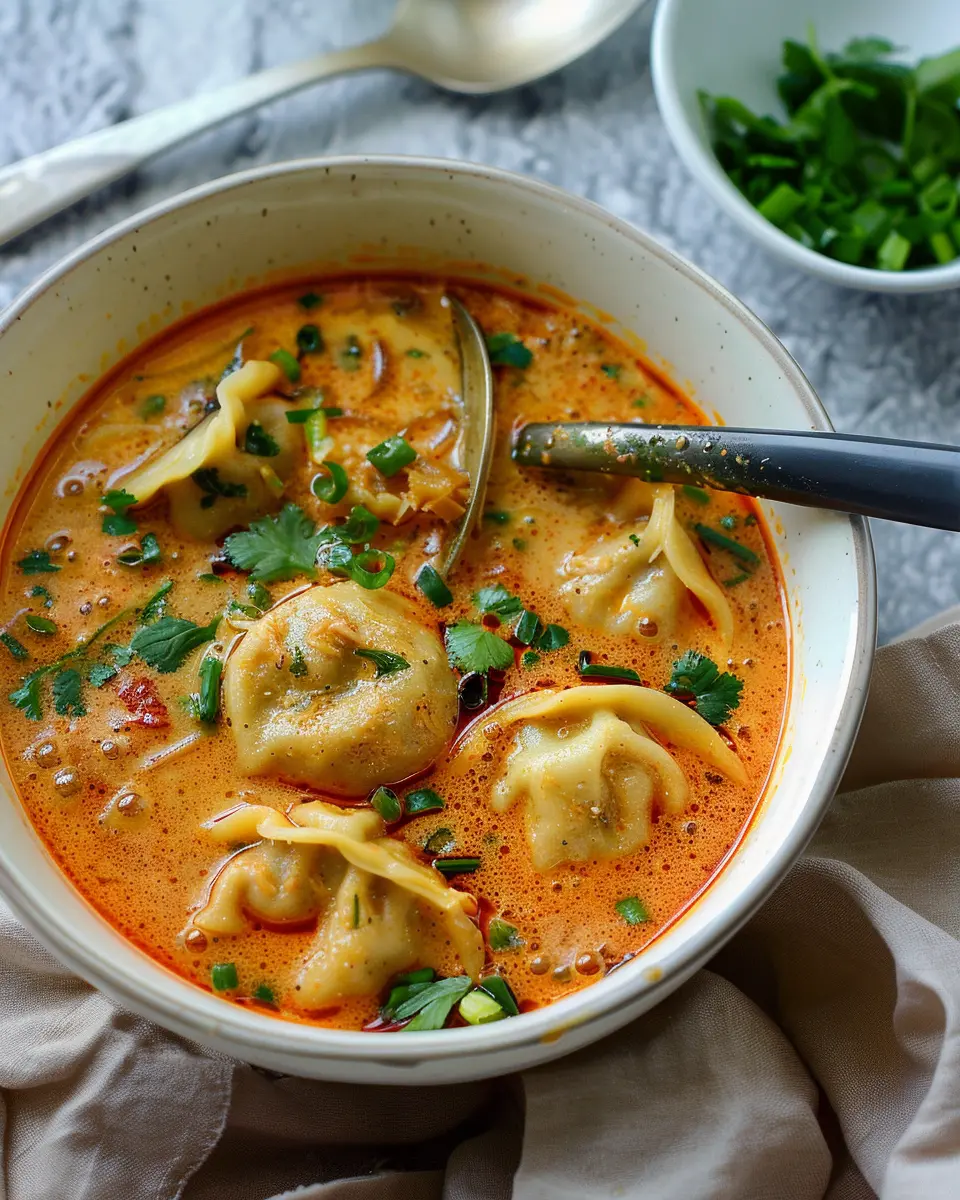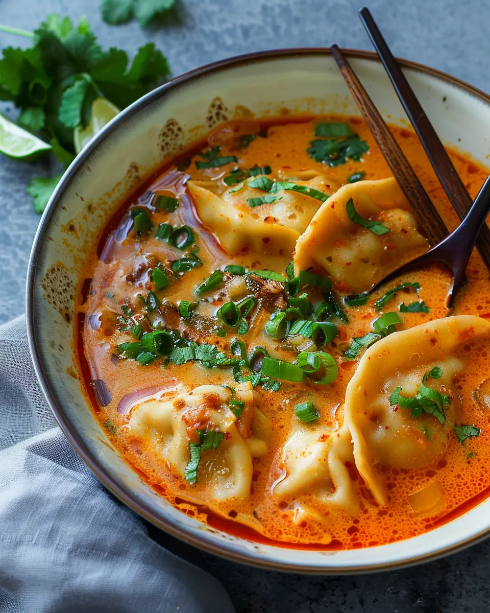 Picture this: flavorful, pillowy dumplings nestled in a creamy coconut base, accented with fresh herbs and spices. Whether you’re indulging solo or impressing friends at a get-together, this soup checks all the boxes.