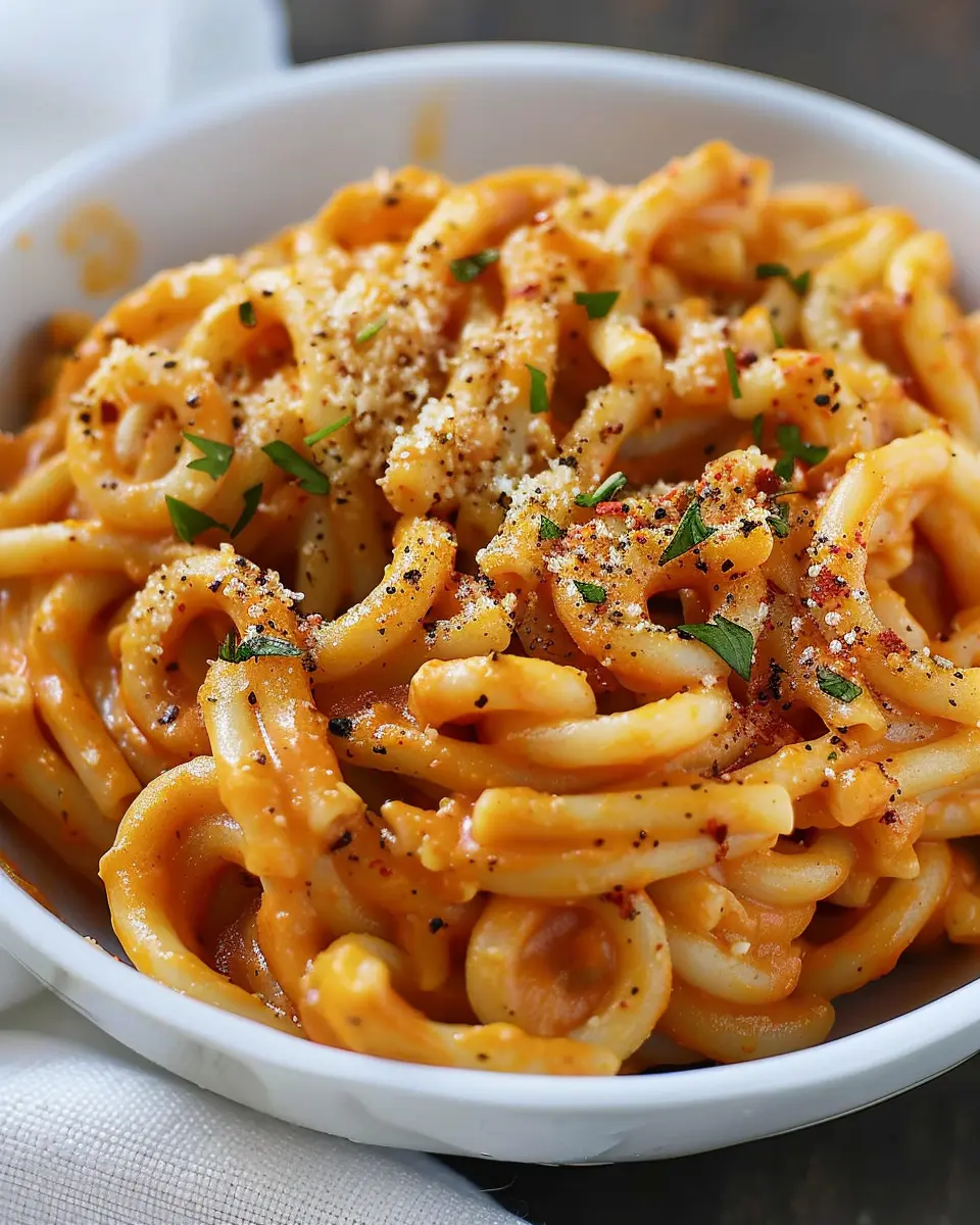 Now, let’s create that signature spicy sauce that makes this dish stand out. The harmony of flavors here really captures the essence of a restaurant-style pasta dish.