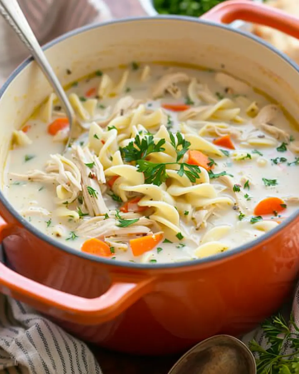 Homemade soup brings a unique joy that warms the heart and soul. This creamy chicken noodle soup is an easy, comforting recipe that you can whip up after a long day. It’s simple—just combine flavorful ingredients like tender chicken, rich broth, and creamy goodness, and you’re in for a treat.