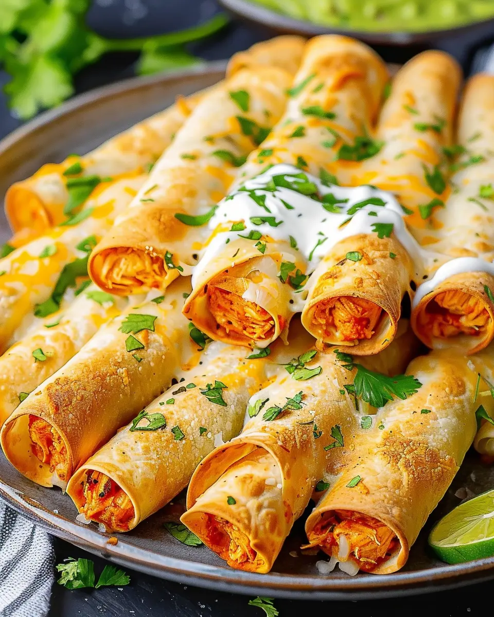 A delightful and easy recipe for creamy chicken taquitos, perfect for home cooks seeking indulgent flavors.