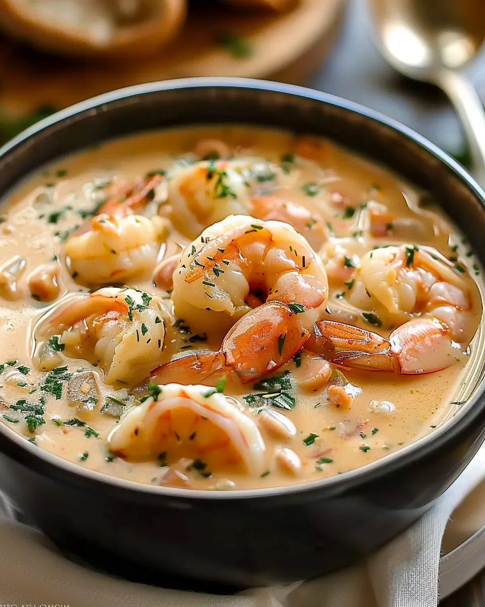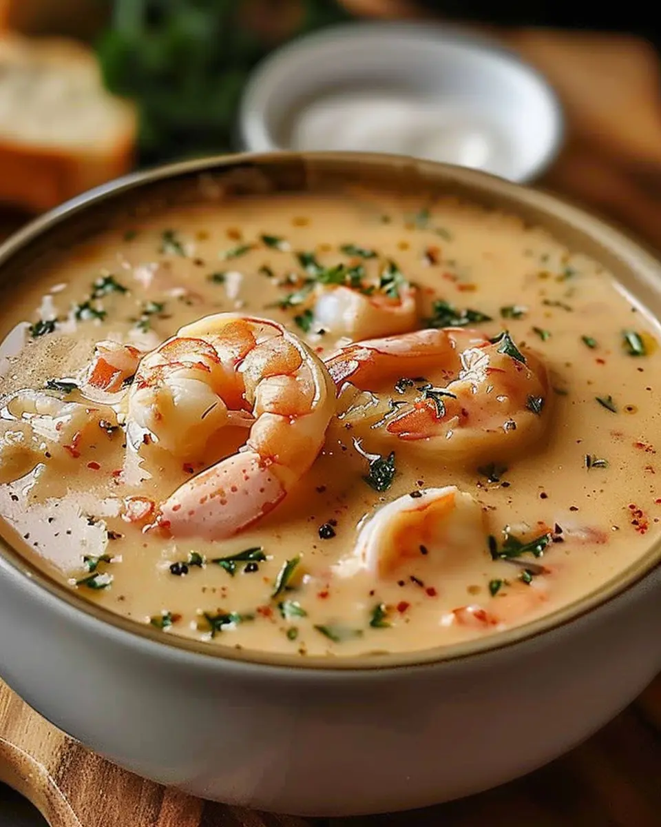 Indulge in a warm and comforting bowl of Creamy Crab and Shrimp Seafood Bisque, perfect for chilly evenings.