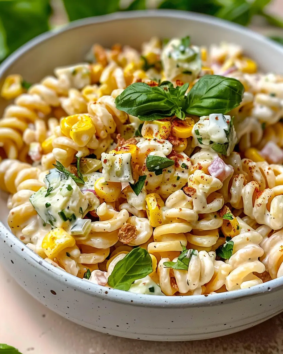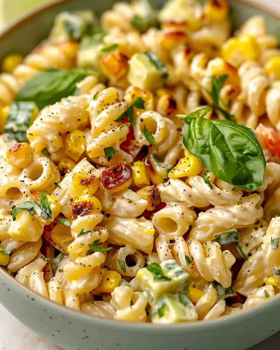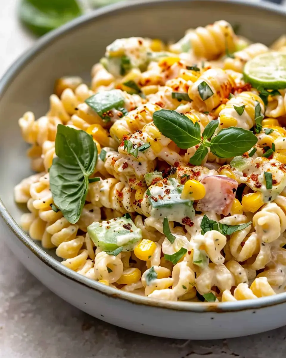Finally, it’s time to serve your delightful Creamy Street Corn Pasta Salad!