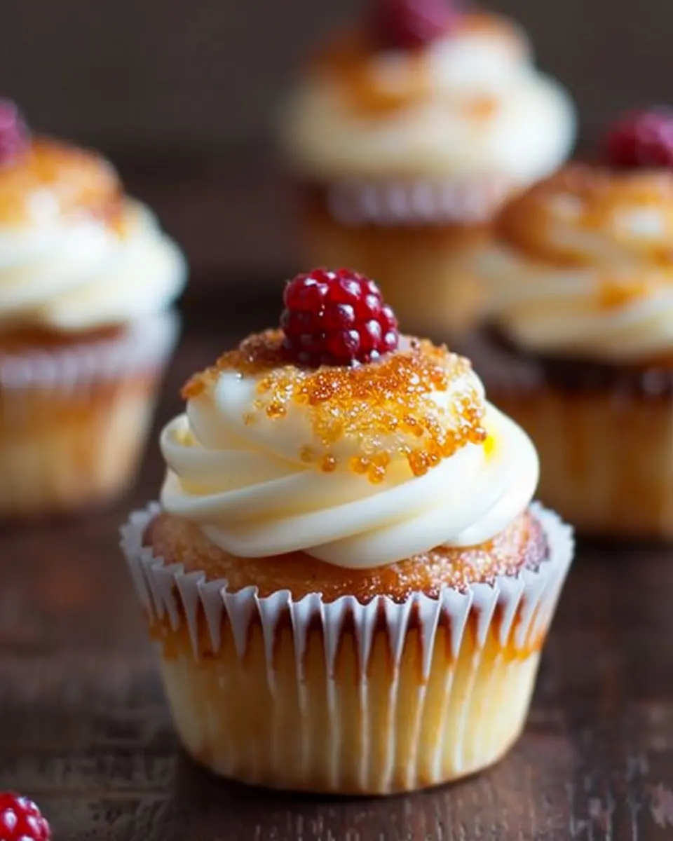 Indulge in these rich and creamy creme brulee cupcakes that bring the beloved dessert into a delightful cupcake form.