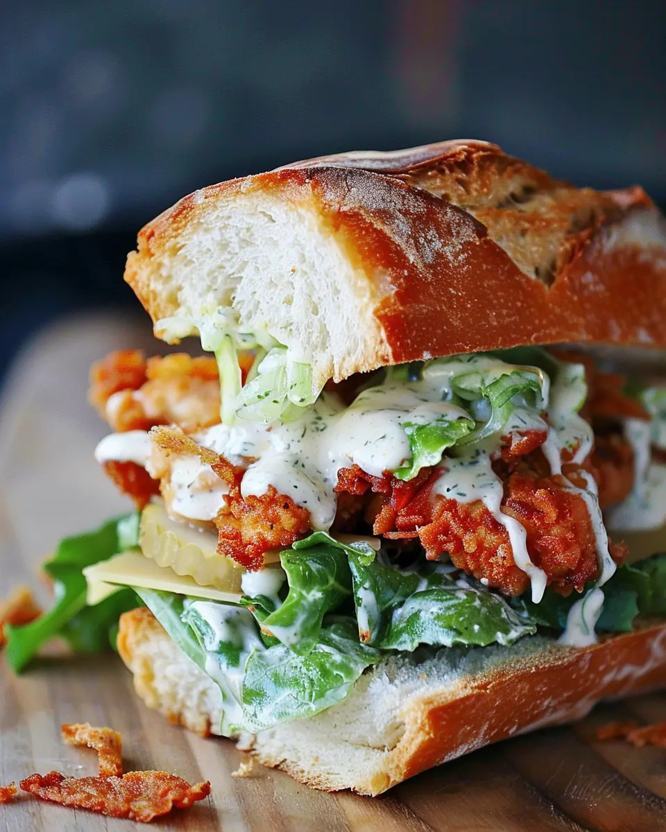 The magic really lies in the balance of flavors and textures. The crunchiness of the chicken contrasts beautifully with the tender greens while the creamy dressing ties everything together. Each bite is not just a taste experience; it’s a journey through textures. The Crispy Chicken Caesar Sandwich brings together: