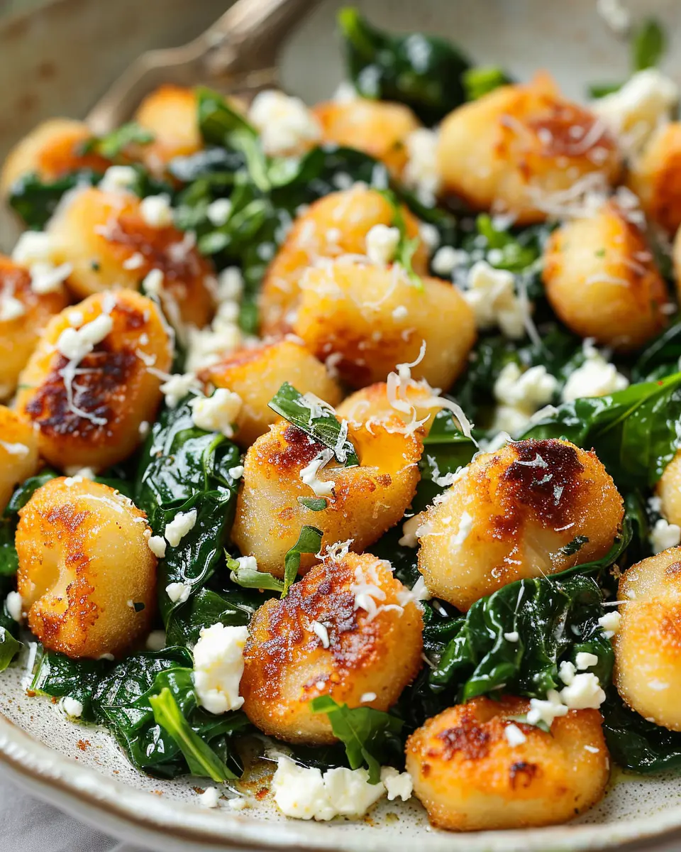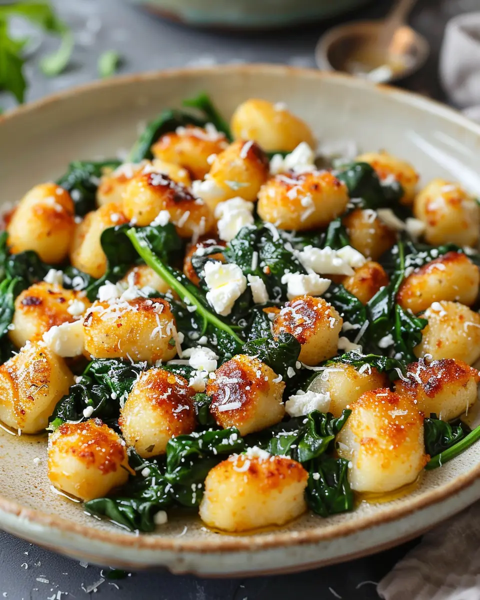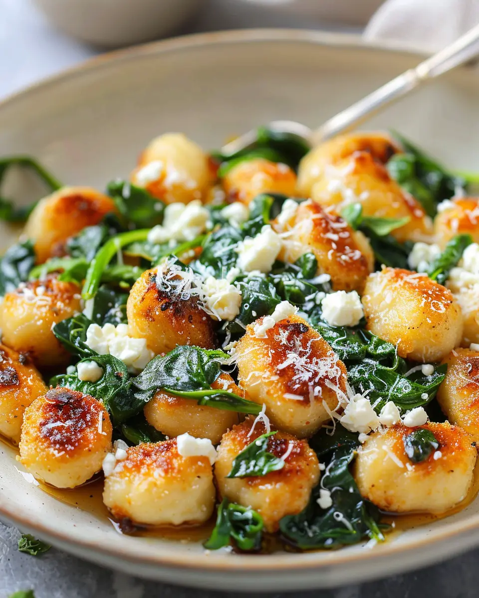 Introduction to Crispy Gnocchi with Spinach and Feta