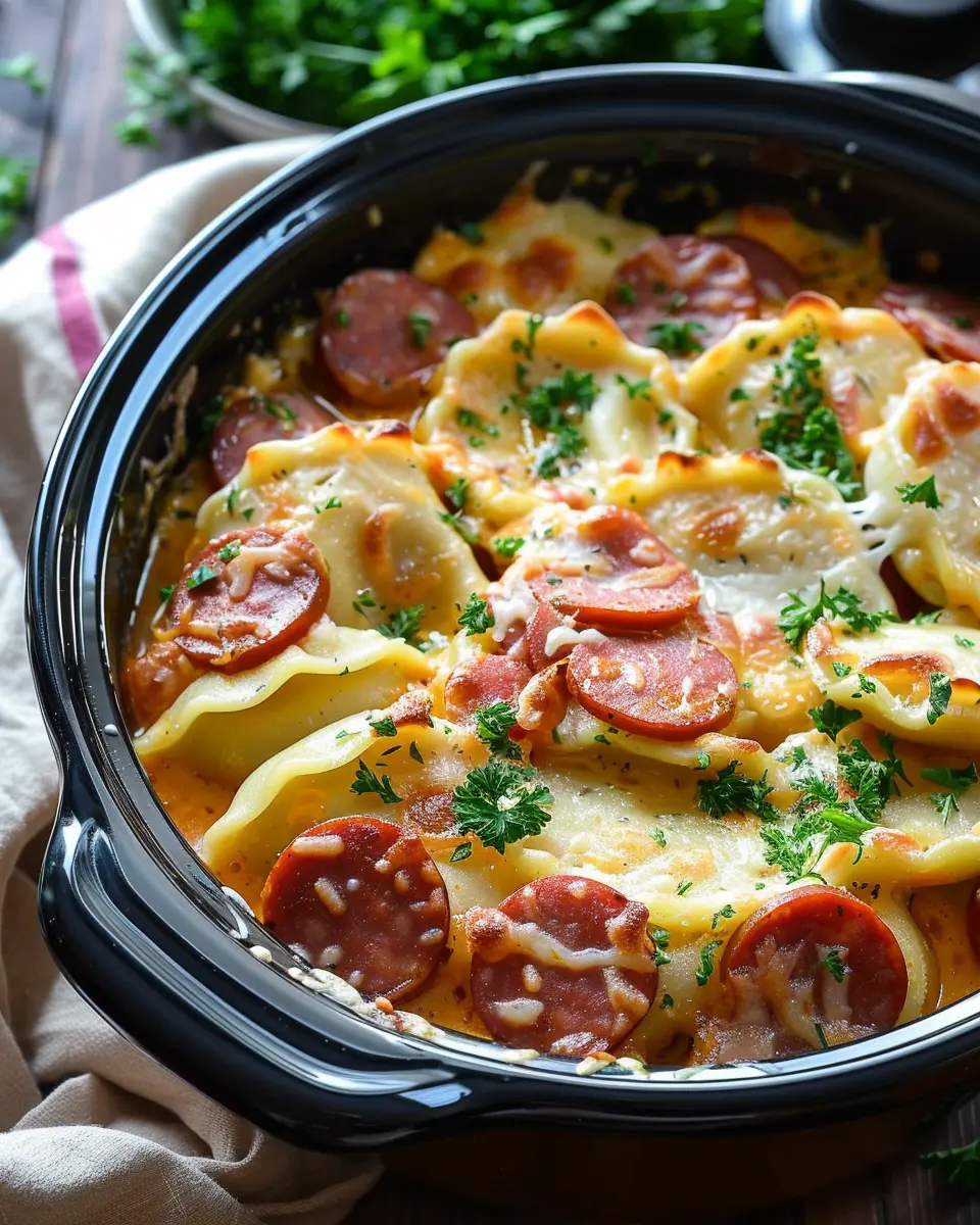 Crock pot Pierogi Casserole with Kielbasa Recipe: Easy Comfort Food
