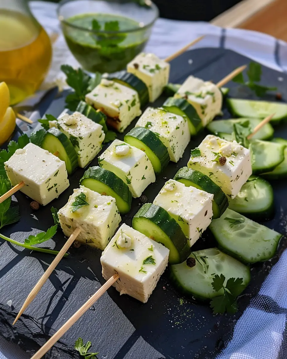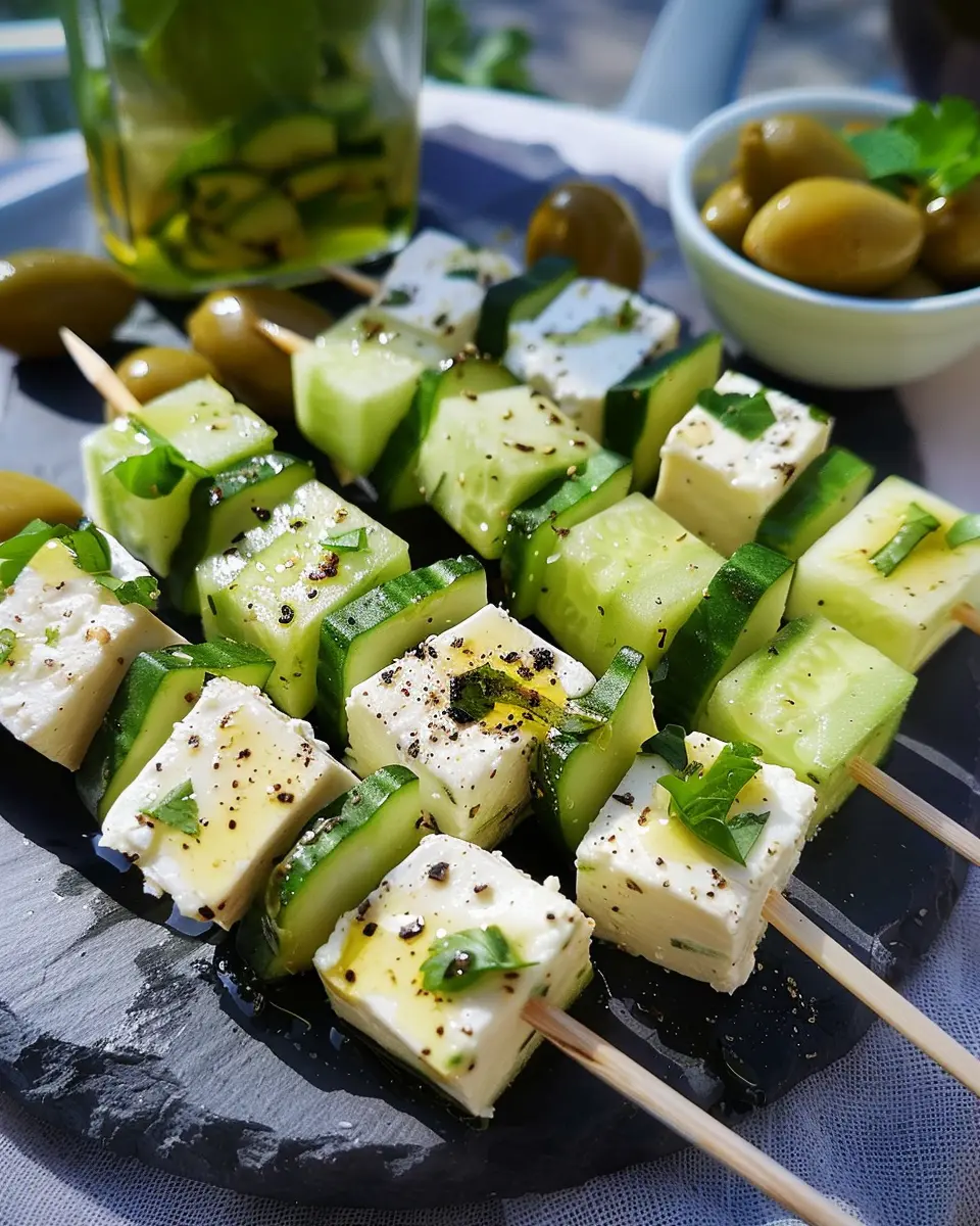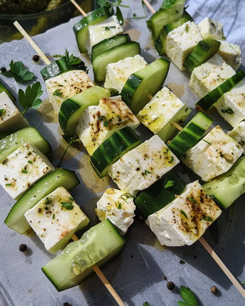 These cucumber and feta skewers are a refreshing appetizer that everyone will love. Perfect for parties or gatherings, they are easy to prepare and visually appealing.