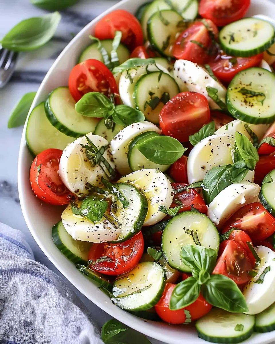 This updated version of a classic salad also shines light on the nutritional benefits. Cucumbers are hydrating and low in calories, making them a fantastic choice for anyone looking to eat healthily. Tomatoes offer a good dose of vitamins and antioxidants, and mozzarella adds that creamy touch we all crave. By incorporating these ingredients, you create not only a dish that’s beautiful but also nutritious.
