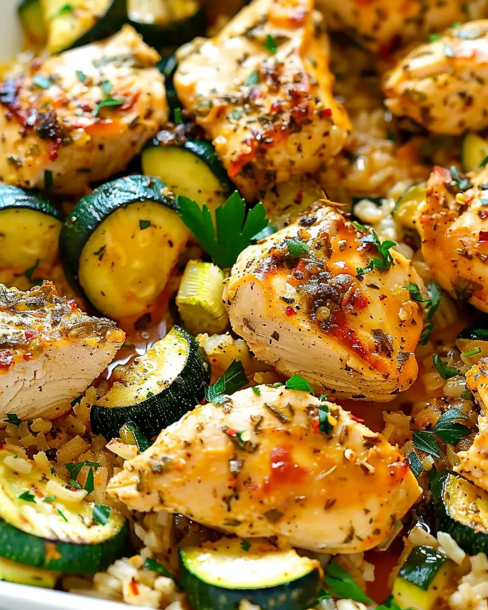 Once everything is arranged, it’s time to bake! Pop the dish into the preheated oven and let it cook for about 25-30 minutes, or until the chicken is fully cooked (internal temperature should reach 165°F) and the zucchini is tender but still retains some crunch.