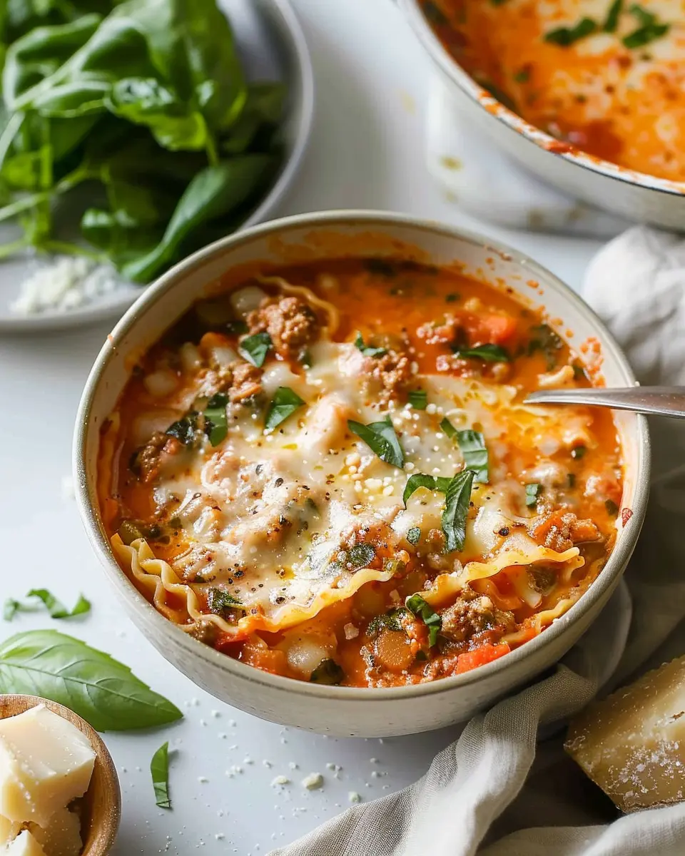 Your Easy Creamy Lasagna Soup is now ready to be enjoyed! Serve it hot with some crispy garlic bread or a fresh side salad, and watch as it warms the hearts of everyone at your table. Remember, this dish doesn’t just satisfy hunger; it brings people together and creates moments worth cherishing. Happy cooking!
