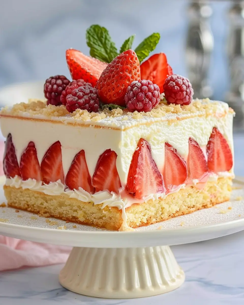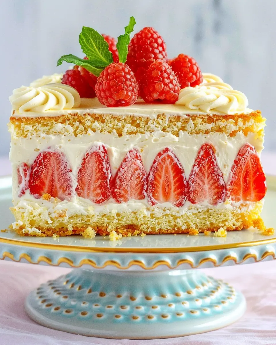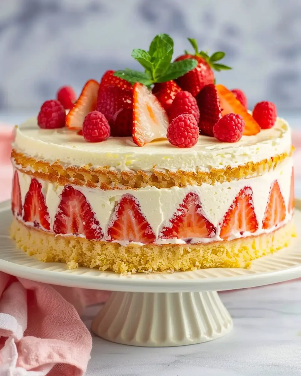 This light and airy sponge perfectly complements the cream and fruit layers, making it a favorite among cake lovers.