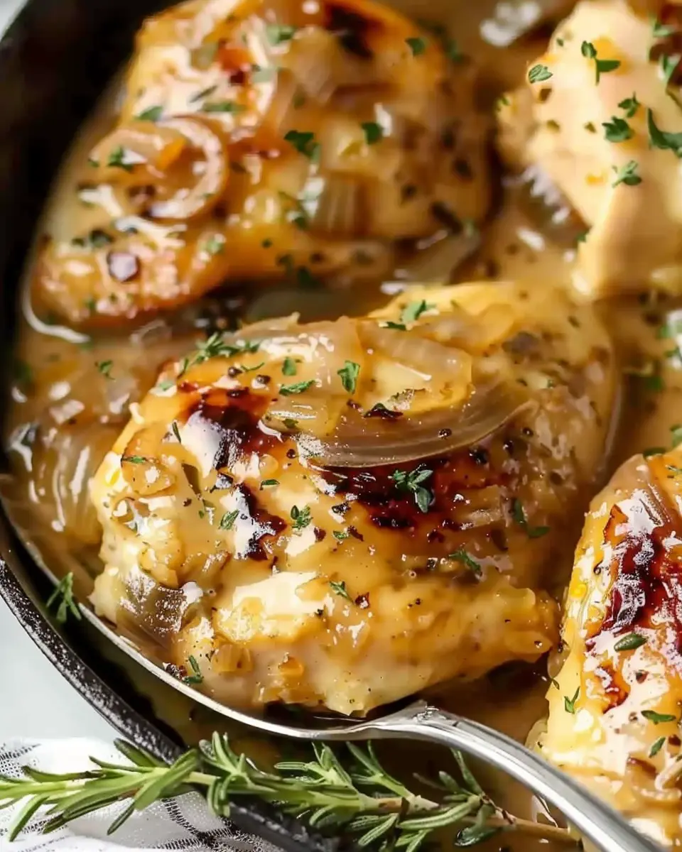 Do you have any variations of your own? Feel free to share your creative twists in the comments below or check out Bon Appétit for more inspiration. Cooking should be an adventure, so don’t hesitate to make this French onion chicken your own!
