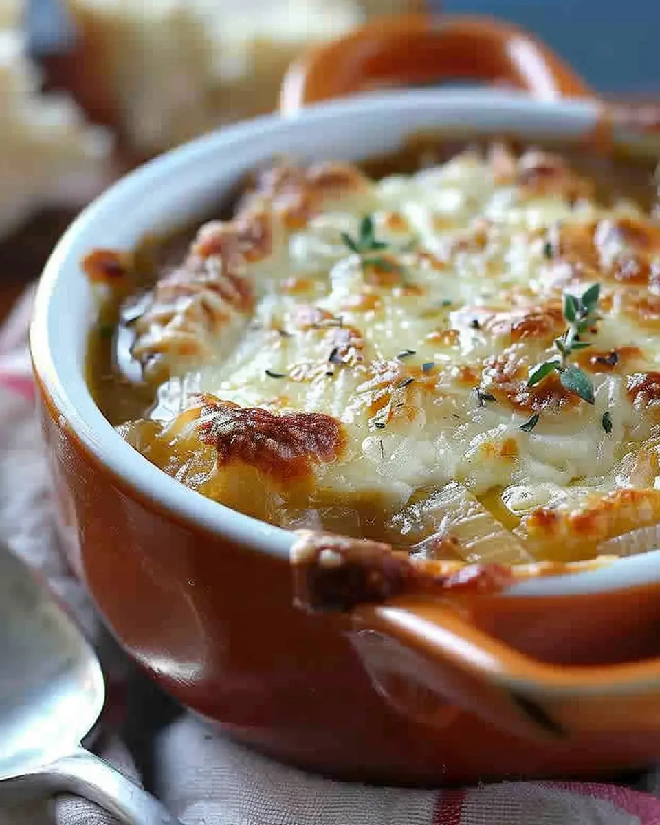 PrintFrench Onion Soup: A Comforting Indulgence with Turkey Bacon