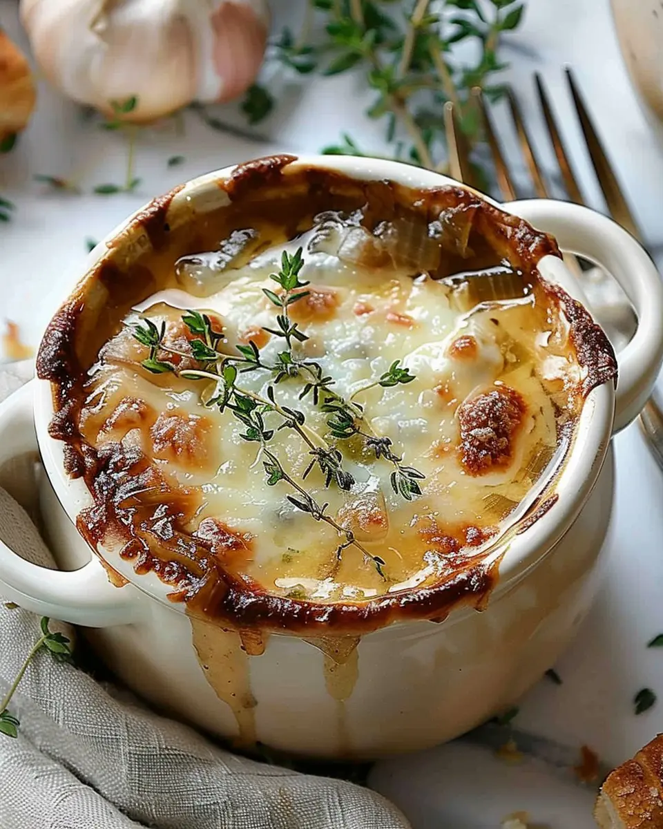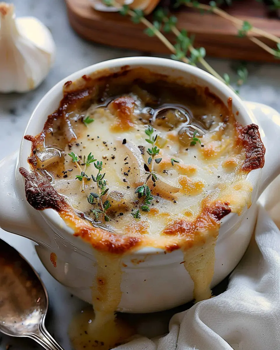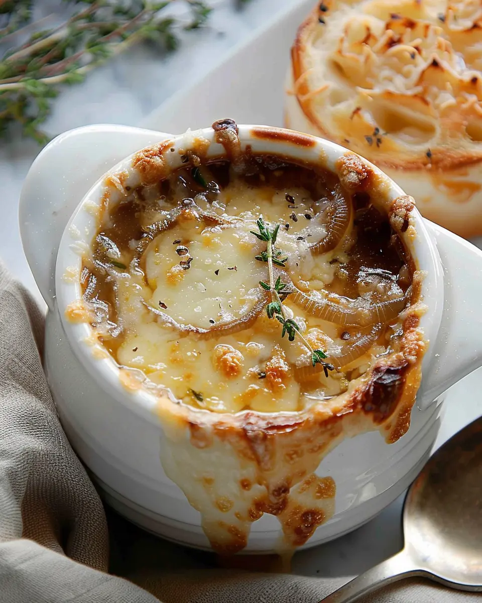 In summary, French Onion Soup is a warm hug in a bowl that seamlessly blends flavors and textures. The caramelized onions offer a rich sweetness, while the savory broth and melted cheese deliver comfort every time. Experiment with different kinds of bread or add a dash of smoked paprika for an extra twist. Want to elevate your soup game? Consider pairing it with a simple arugula salad or a homemade sourdough loaf. This classic dish not only warms your stomach but also warms the soul. As you make this timeless recipe, remember—it’s about enjoying the process and sharing good food with loved ones. Explore more about the enchanting world of French cuisine through PBS Food, and happy cooking!