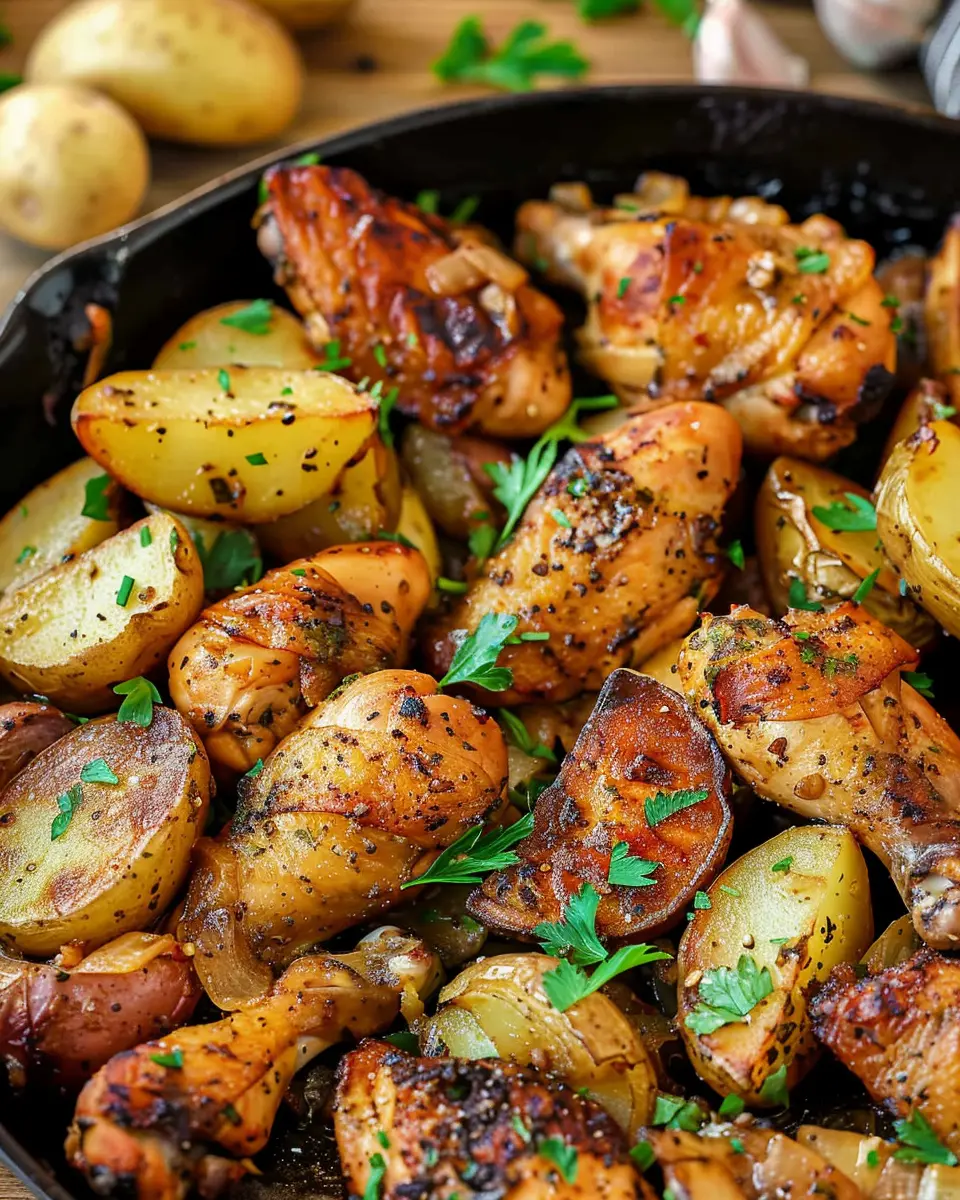 Imagine coming home after a long day, greeted by the warm, savory aroma of garlic wafting through your kitchen. That’s exactly what you’ll experience while preparing this dish. The combination of succulent chicken smothered in a dreamy garlic butter sauce and paired with golden, crispy potatoes will have everyone in your home gathering at the dinner table.