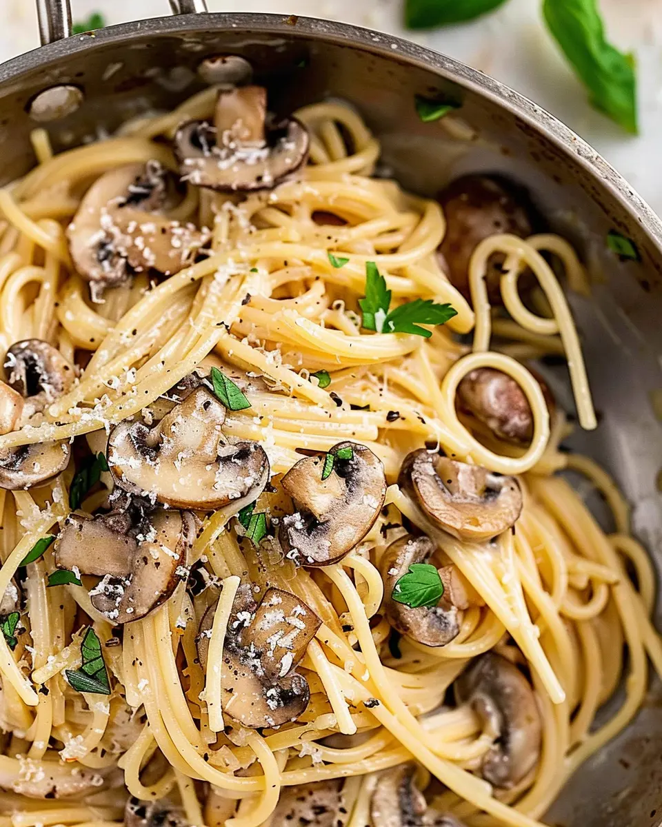 1. Mix Pasta and Sauce: Add the drained pasta directly into the skillet with the garlic butter and mushrooms. Toss it all together, ensuring every strand is coated in that glorious sauce.