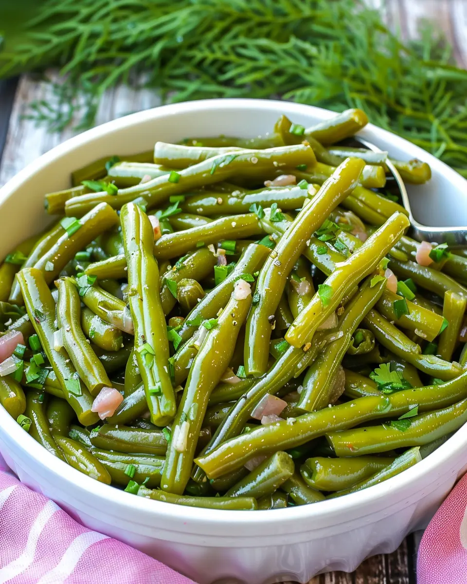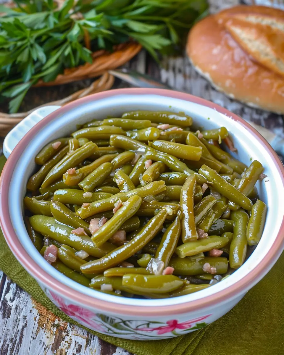 Serving suggestions? These green beans are delightful as a side dish for any meal—whether accompanying roast chicken, grilled beef, or even a simple vegetarian plate. Invite family and friends to enjoy this comforting classic that carries the warmth of home.