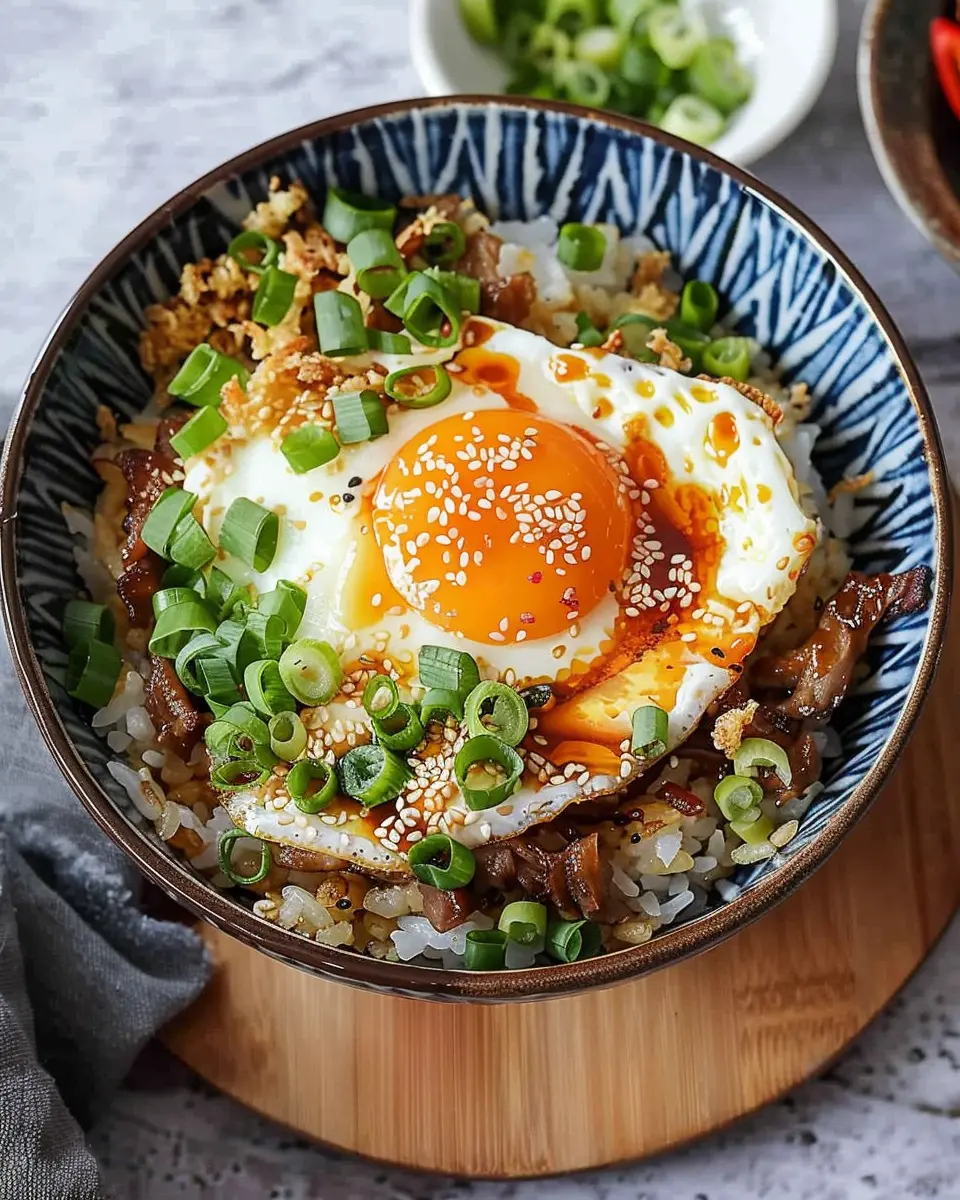 PrintGyeran Bap: Easy Korean Egg Rice Bowl with Turkey Bacon Delight