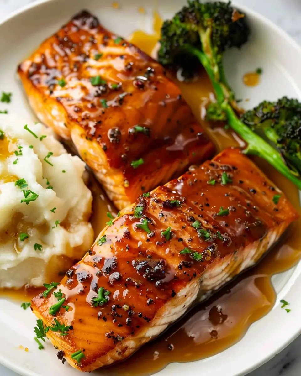 Garlic Mashed Potatoes: Creamy and buttery, these potatoes provide a delightful contrast to the sweet and spicy flavors of the salmon.