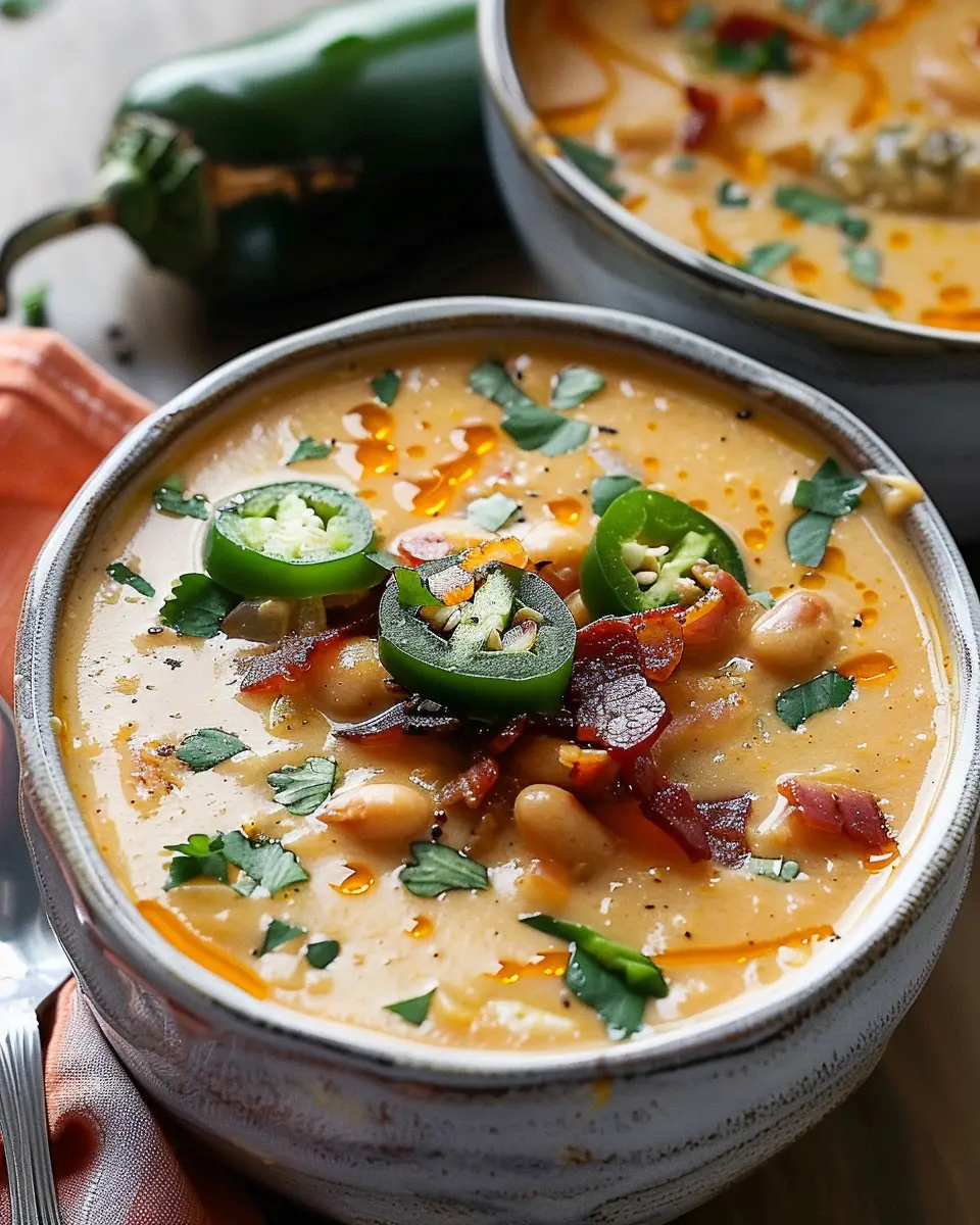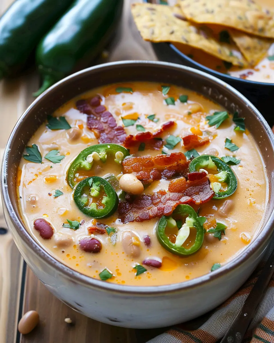 A delicious and comforting soup that combines the flavors of jalapeno poppers with turkey bacon and beans.