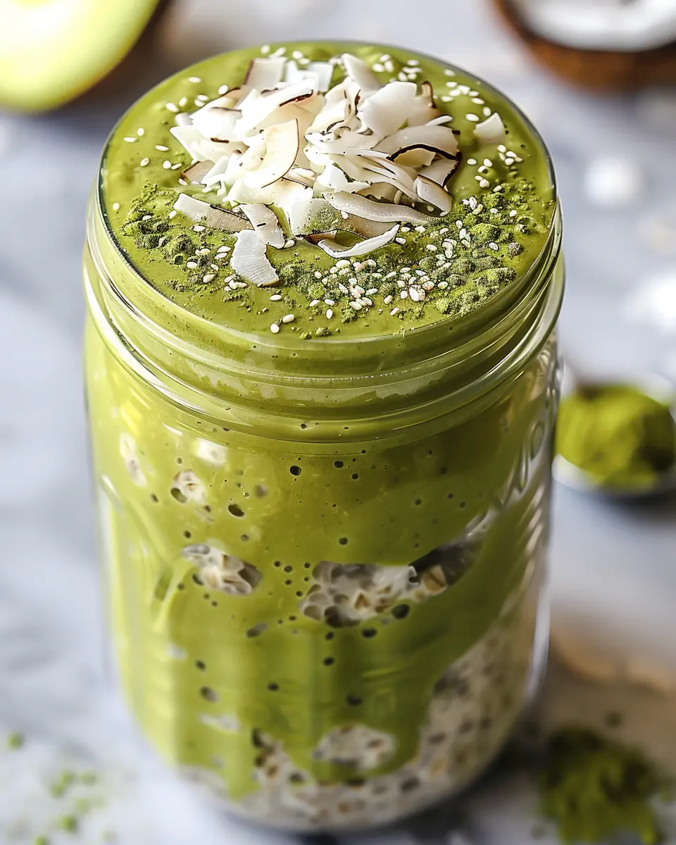 Enjoy a delicious and nutritious start to your day with these Matcha Coconut Overnight Oats. This recipe is packed with flavor and health benefits, making it a perfect breakfast choice!