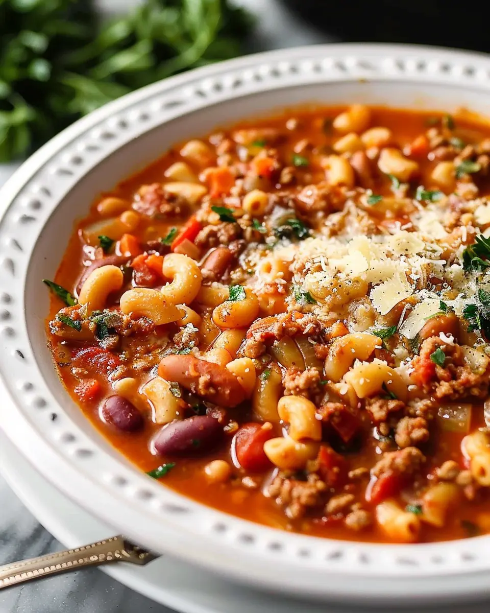 Consider serving your Pasta e Fagioli with a side of freshly baked garlic bread or crispy Italian breadsticks. The warm, buttery flavors create a perfect contrast to the rich, flavorful soup.