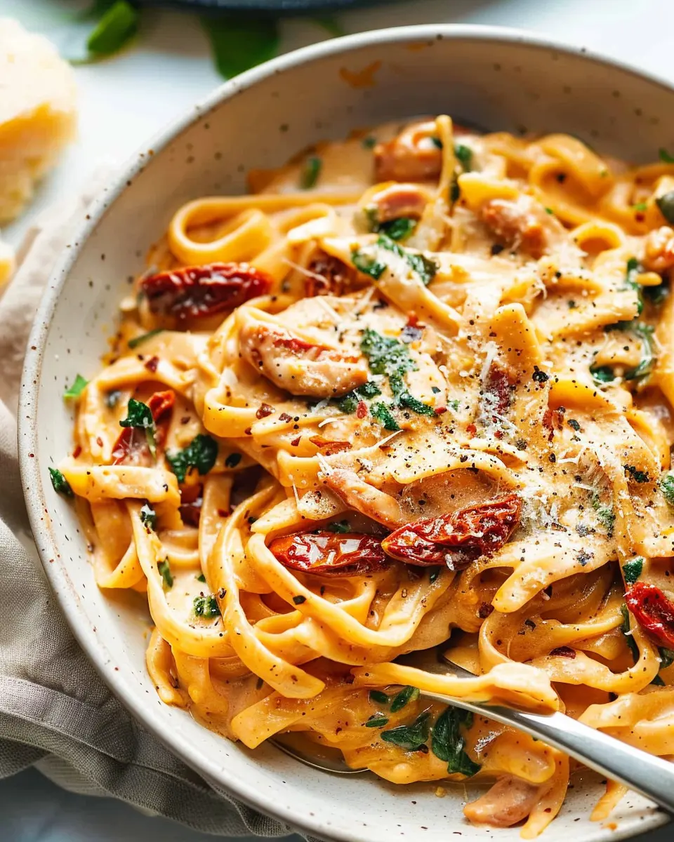 If you’re looking for a meatless option, adding chickpeas can be a game changer. Not only do they provide a protein boost, but they also contribute a wonderful creamy texture that complements the sun-dried tomatoes. Simply toss in one can of rinsed and drained chickpeas along with your pasta in the pot. The chickpeas soak up all the delicious flavors as they cook, making each bite a delight. To elevate the dish further, consider adding a sprinkle of feta cheese and a handful of fresh spinach just before serving. This gives extra creaminess and a pop of color, boosting the nutritional value.