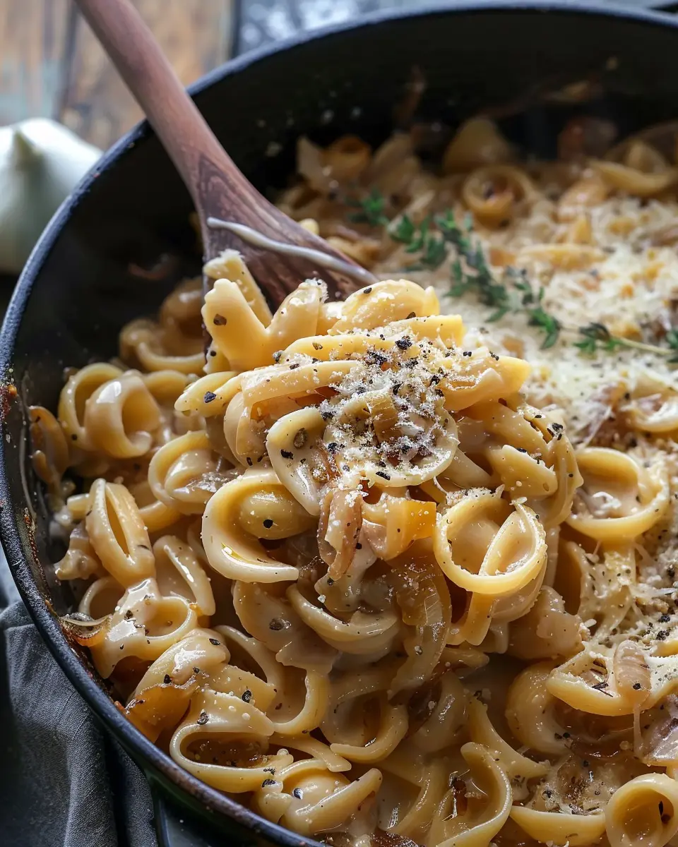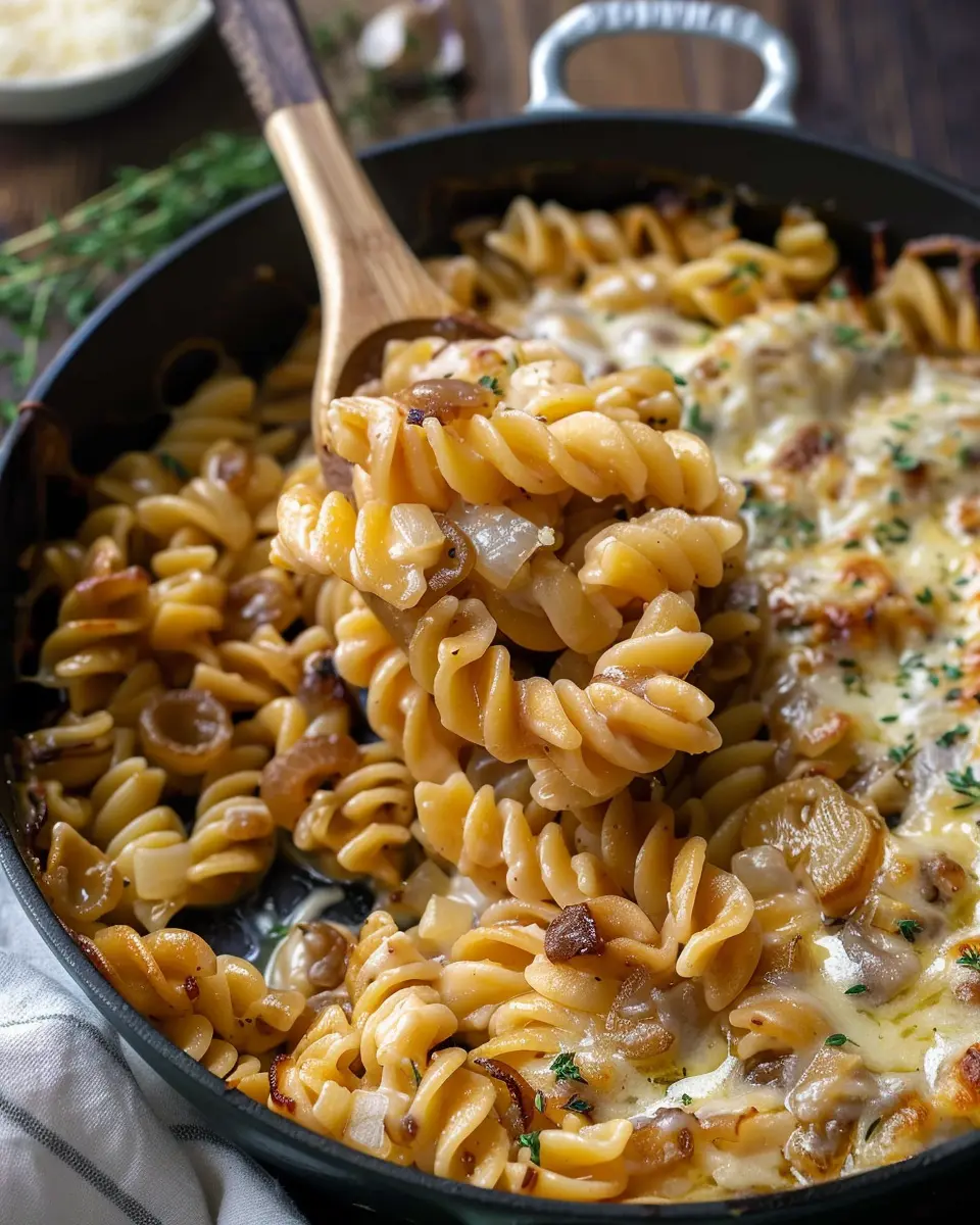 PrintOne Pot French Onion Pasta: Easy Comfort Food with Turkey Bacon