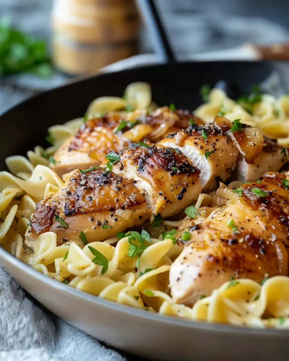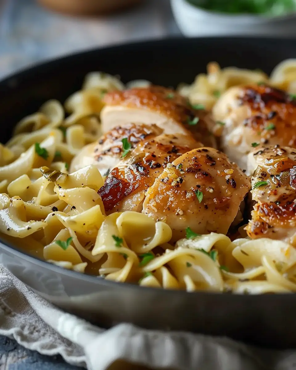 A simple yet delightful recipe that combines juicy chicken and buttery noodles, all cooked in one pan for easy cleanup.