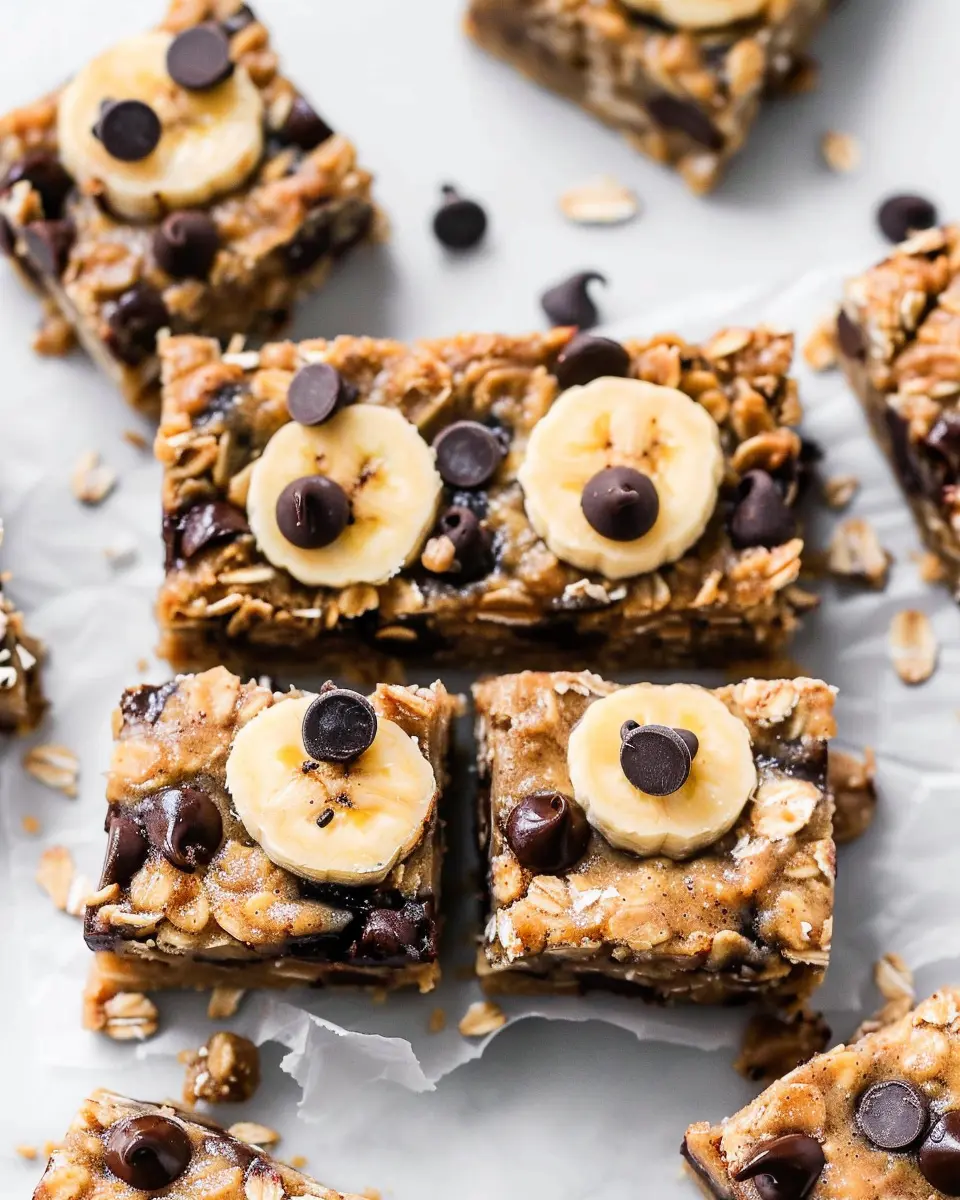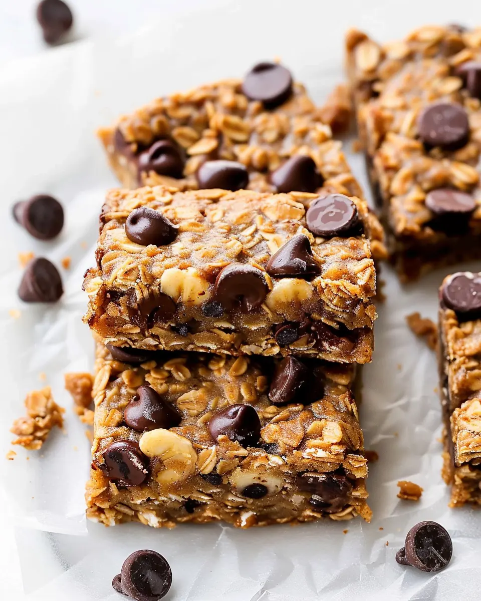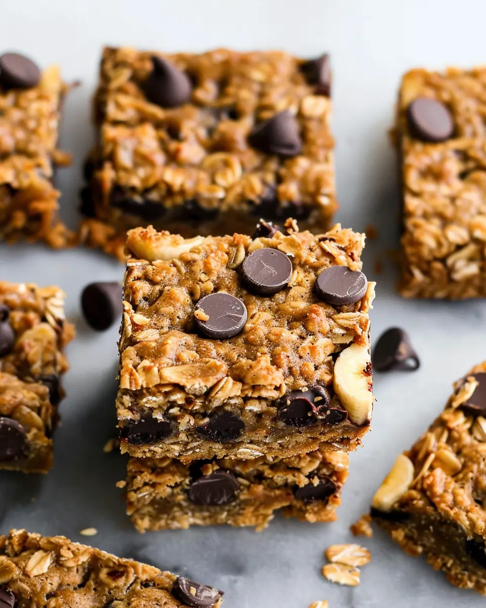 PrintPeanut Butter Banana Chocolate Chip Oatmeal Bars: Easy & Delicious