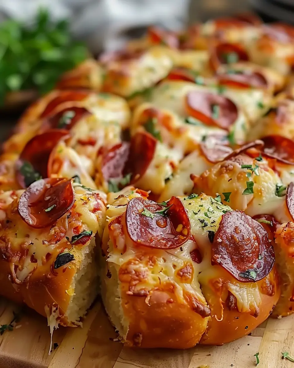 Enjoy the deliciously cheesy goodness of Pull Apart Pizza Bread, the perfect family recipe for any occasion.