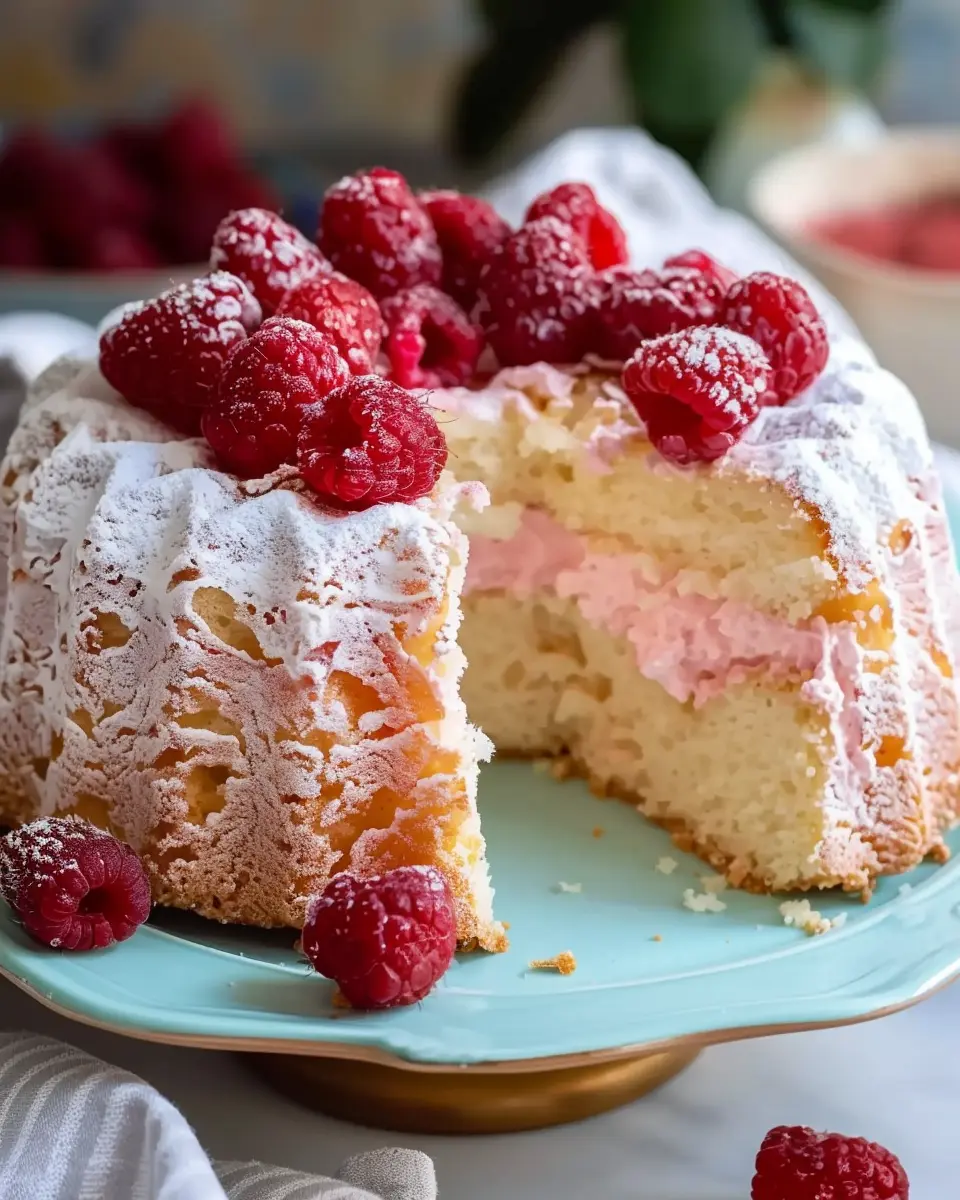 And there you have it—a step-by-step guide to crafting your very own Raspberry Angel Food Cake. It’s a delightful treat perfect for summer gatherings or a lovely afternoon snack. Enjoy every fluffy bite! Would you like to add a dollop of whipped cream or a drizzle of chocolate for an extra special touch? The possibilities are endless!