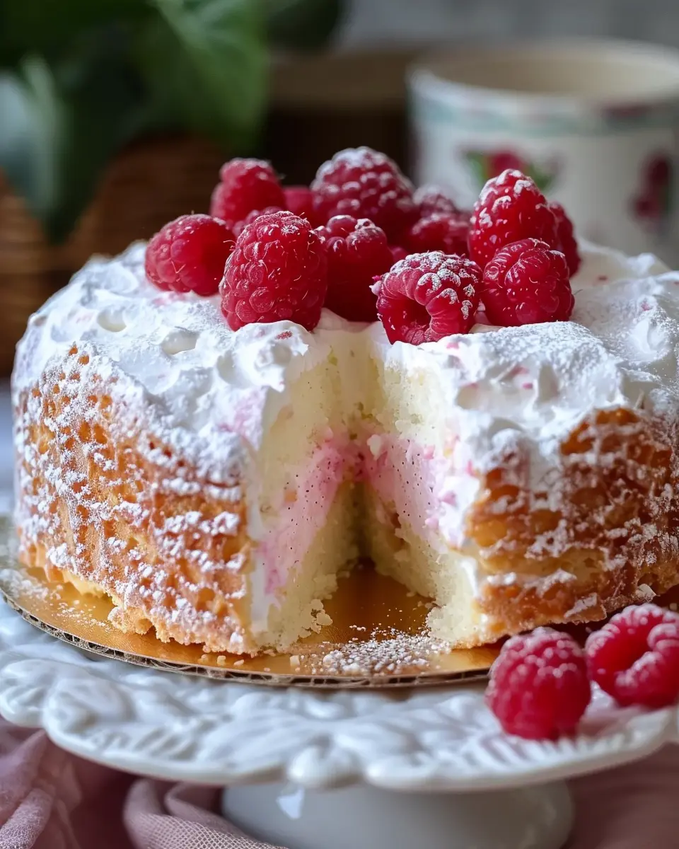 PrintRaspberry Angel Food Cake: The Best Light and Fluffy Delight