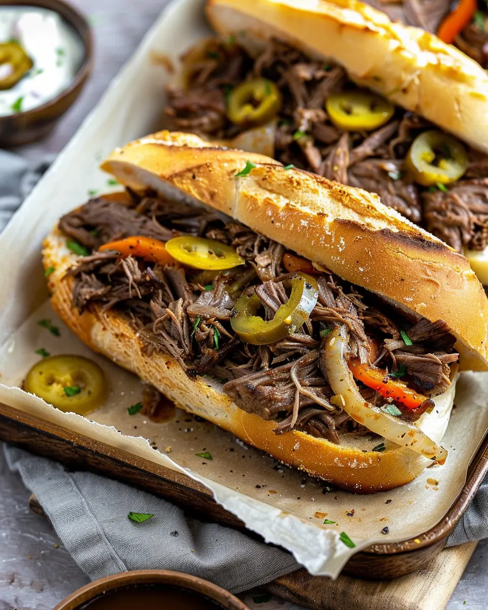 Here comes the fun part! Grab your toasted hoagie rolls and pile on that shredded beef. Don’t be shy; load ‘em up! Drizzle some of the reserved cooking juices on top to keep everything moist and flavorful. If you’re a fan of extra toppings, consider adding some sliced jalapeños or provolone cheese for an ooey-gooey finish.
